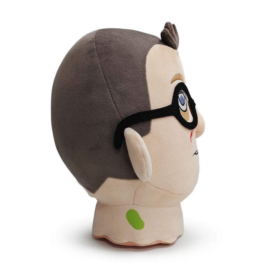 Are you ready for the newest, hottest, fashion accessory this side of the wasteland?! That’s right, it’s Wilzigs…severed…head… Look, just trust us ok! You’ll be the talk of the Vault Dwellers! At 9 inches tall with lifeless sunken blue eyes staring through a pair of round black-rimmed glasses, his hair is cropped short except for a fringe which flicks outwards as bright red cuts mark his face and a bright green glow emanates from his crudely cut neck. This plush is packed to the seams with 100% PP cotton and is made of a mixture of minky and felt materials, absolutely perfect for cuddling and keeping you company through the wasteland!