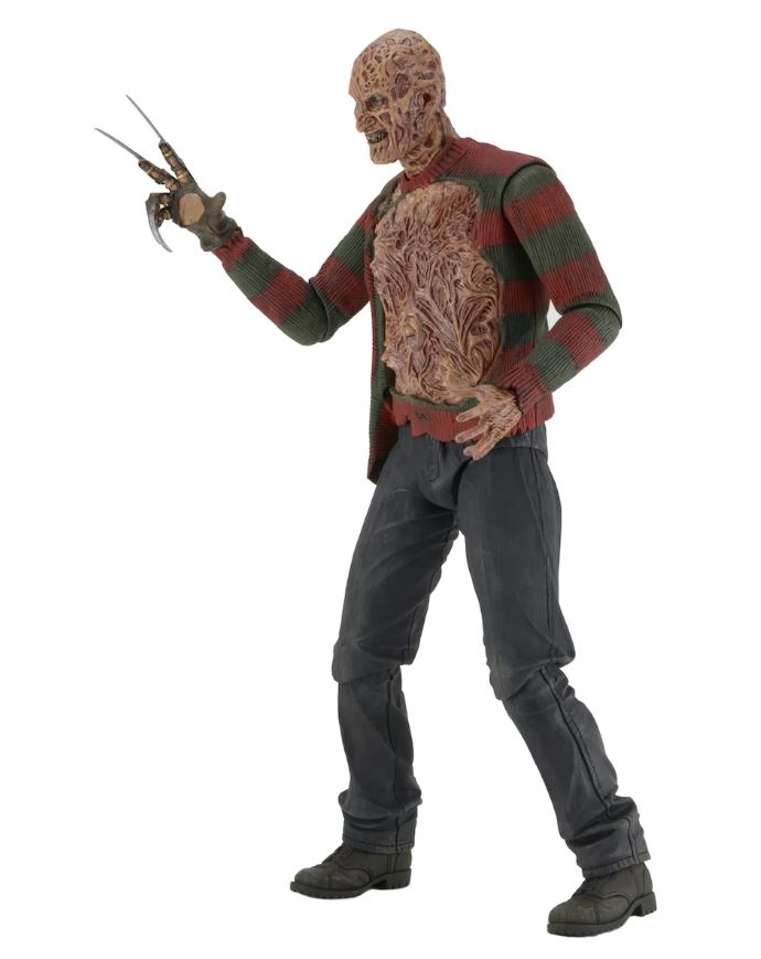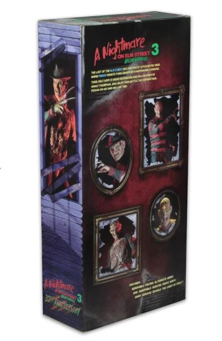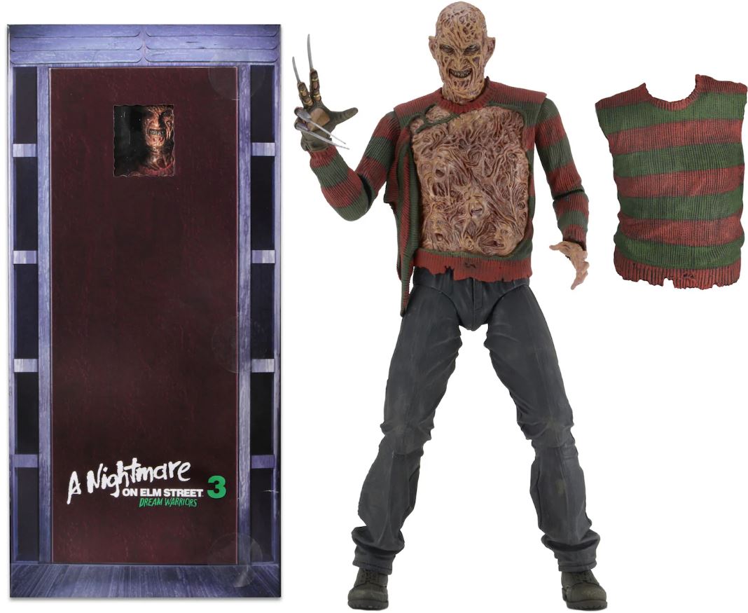 This NECA Nightmare on Elm Street Part 3 Dream Warriors action figureis a must have for any Freddy Krueger fan.This is a quarter scale action figure celebrating the 30th anniversary of the cult classic Nightmare on Elm Street Part 3: Dream Warriors! This new Freddy Krueger figure stands 18 tall and features plenty of gruesome detail, like interchangeable heads and chests to recreate different parts of the movie.