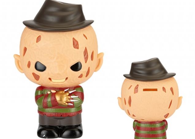 Freddy Krueger from Nightmare on Elm Street figural bank. About 8 inches tall. Made of PVC.