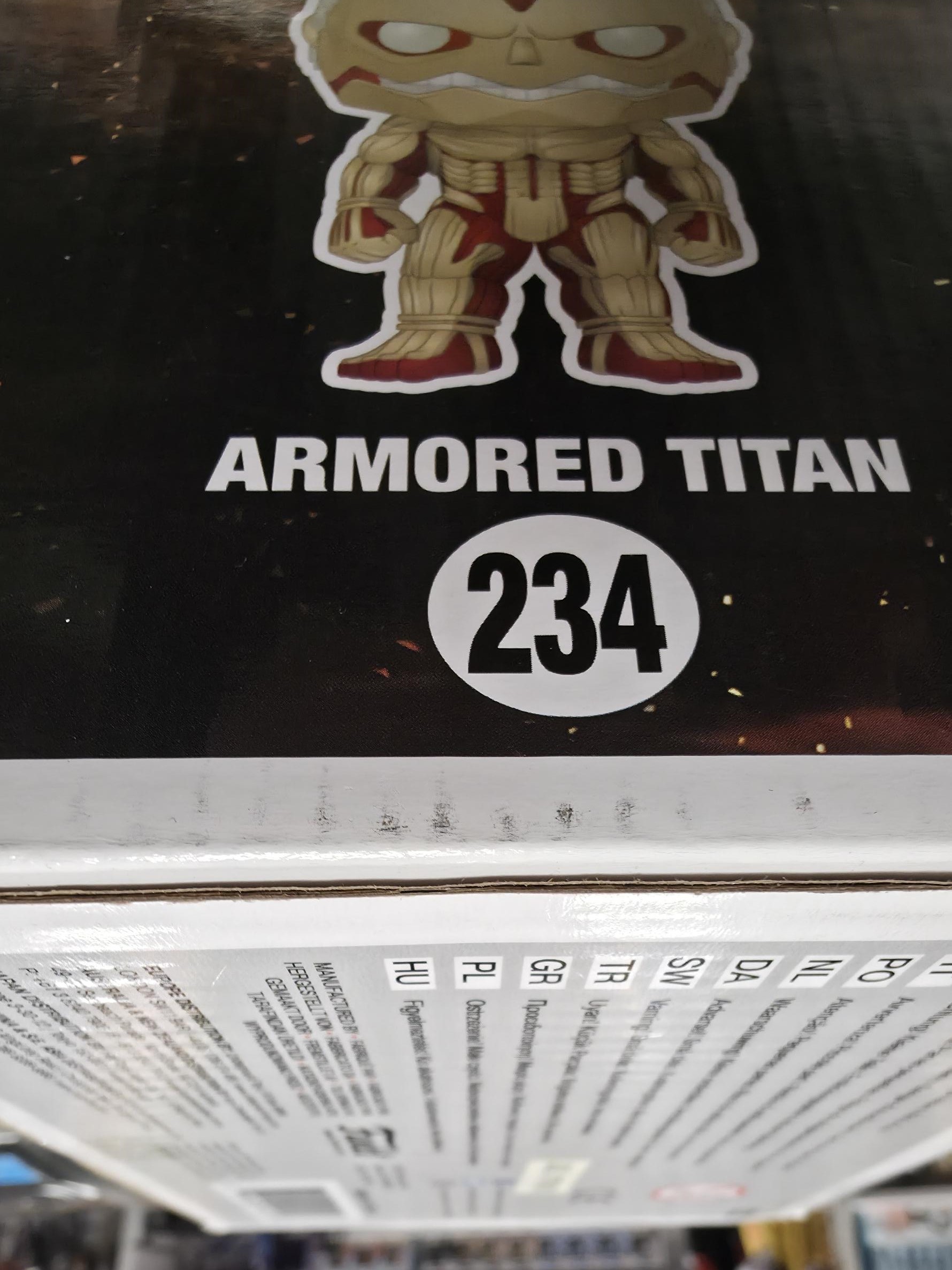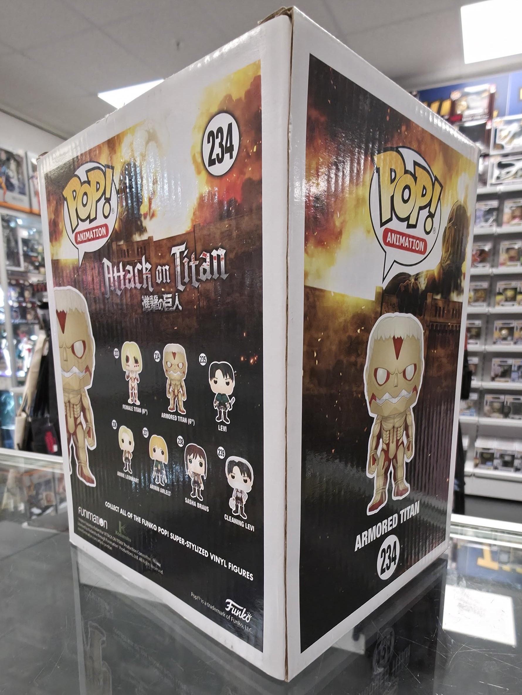 This Pre Loved Attack On Titan: Armored Titan 6" (234) Funko POP! Vinyl Figure comes packaged in its original window display box and it's in fair condition.