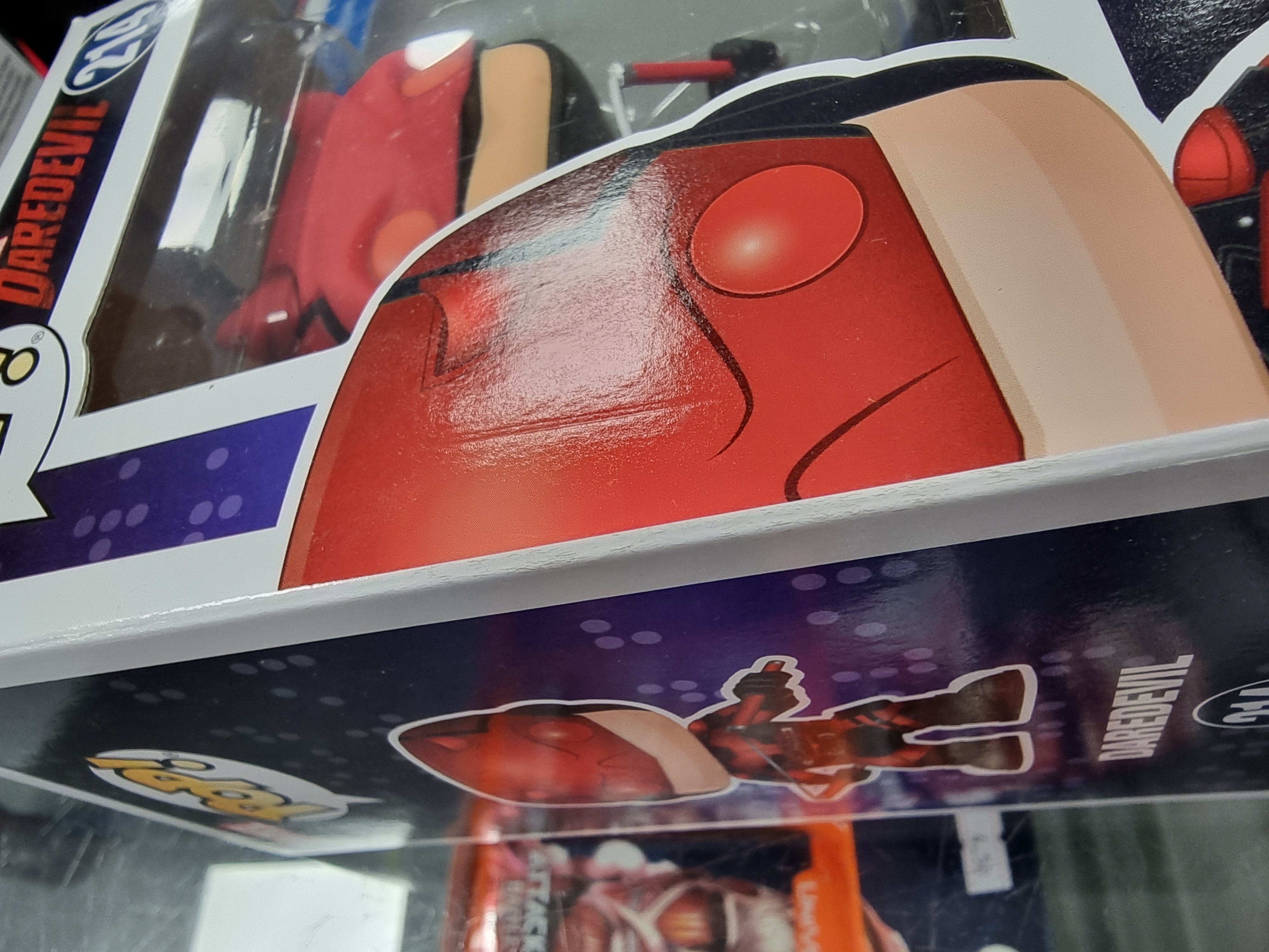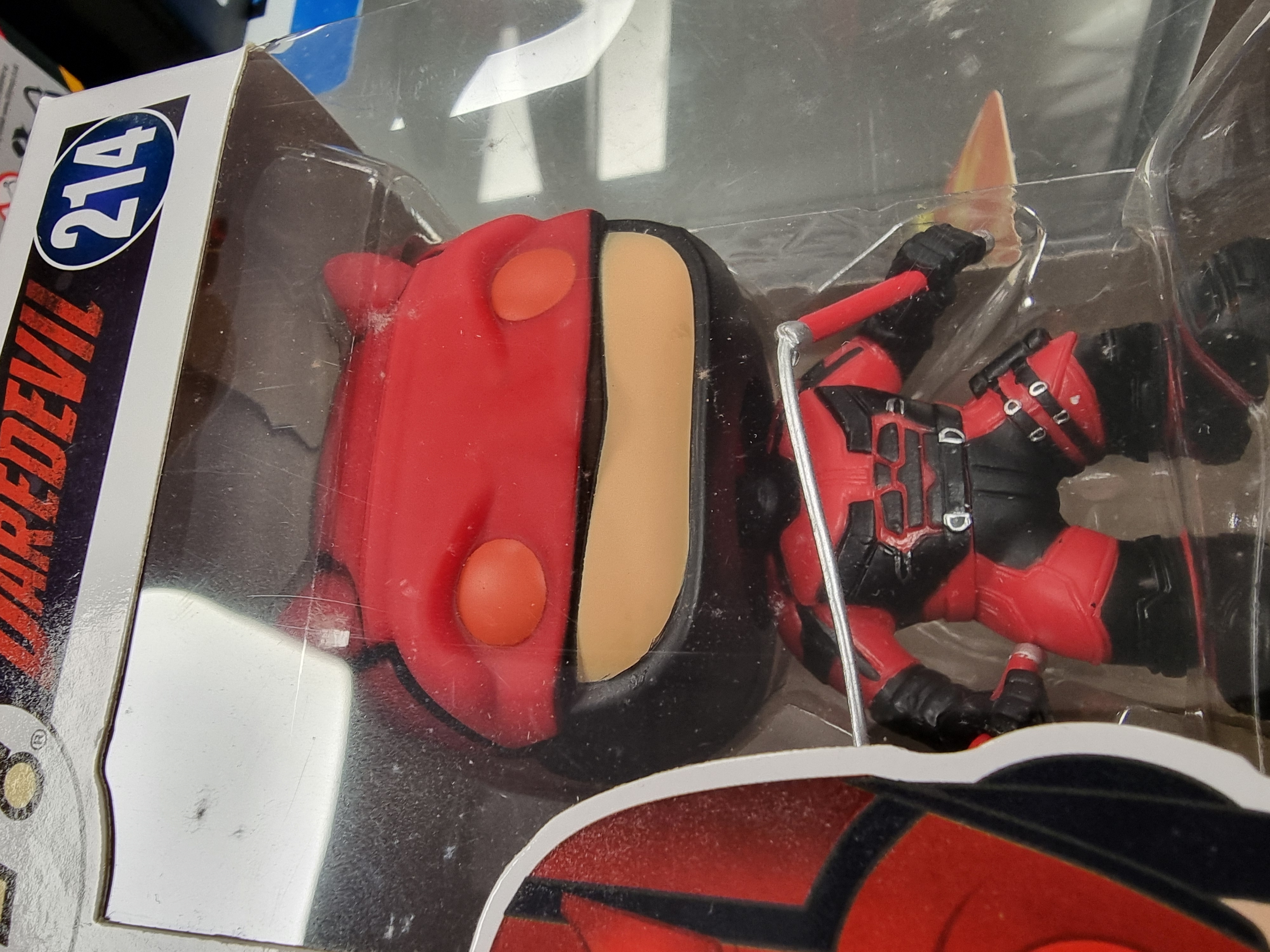 This Pre Loved Marvel: Daredevil: Daredevil 214 Funko POP! Vinyl Figure comes packaged in its original window display box and it's in fair condition.