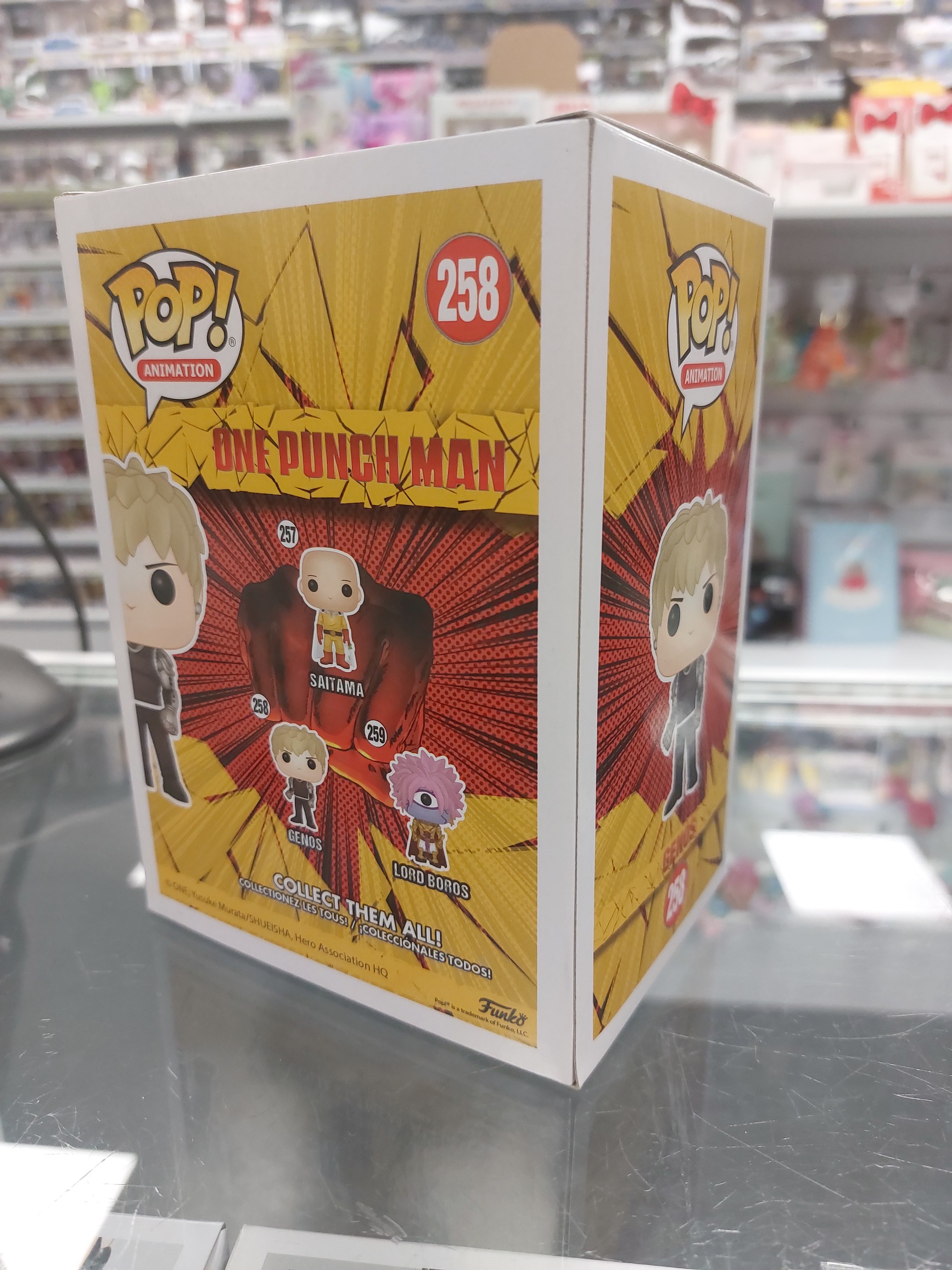 This Pre Loved One Punch Man: Genos Funko POP! Vinyl Figure comes packaged in its original window display box and it's in good condition.