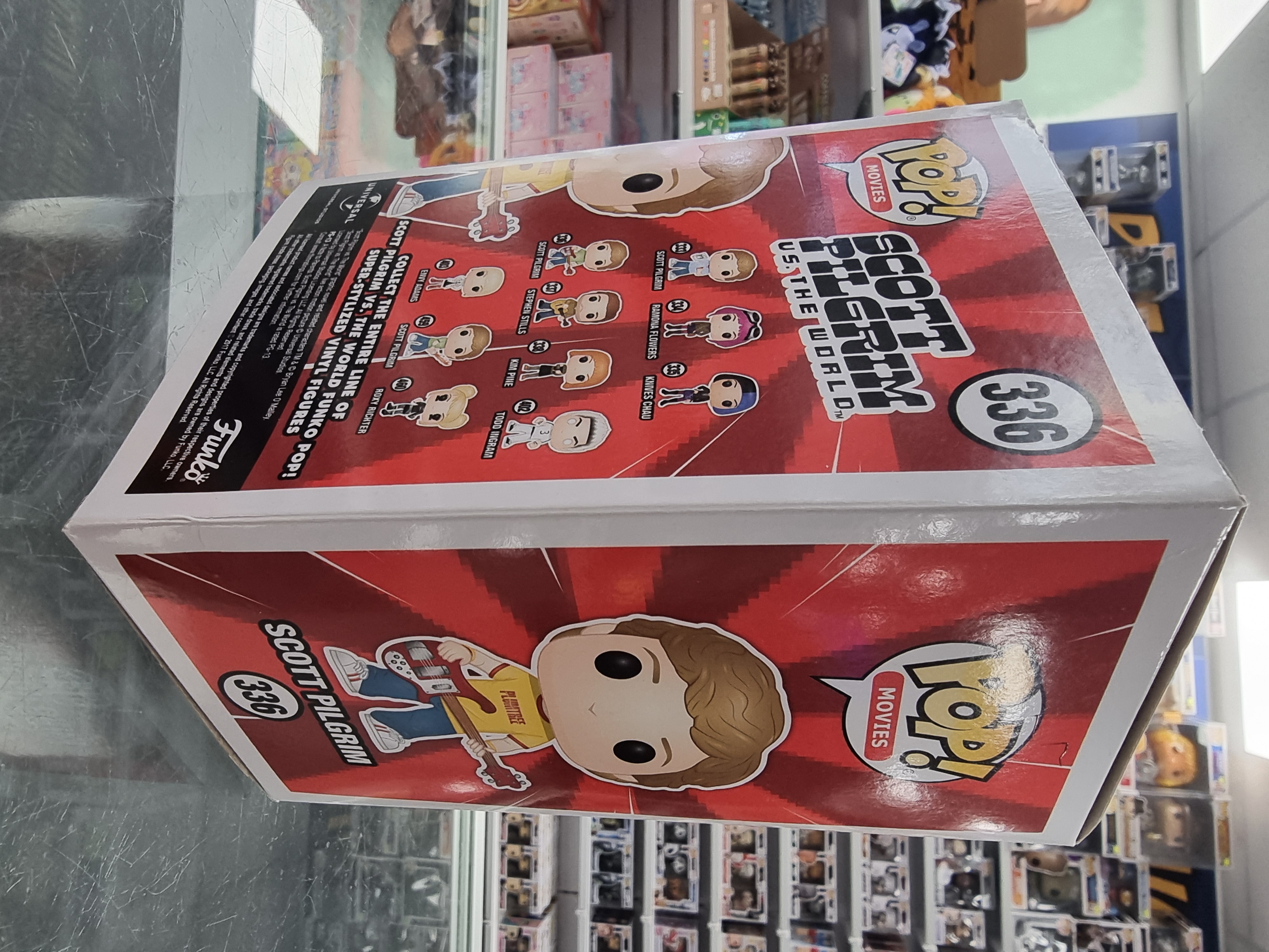 This Pre Loved Funko POP: Scott Pilgrim: Scott Plumtree Tee Exc POP! Vinyl Figure comes packaged in its original window display box and it's in good condition.