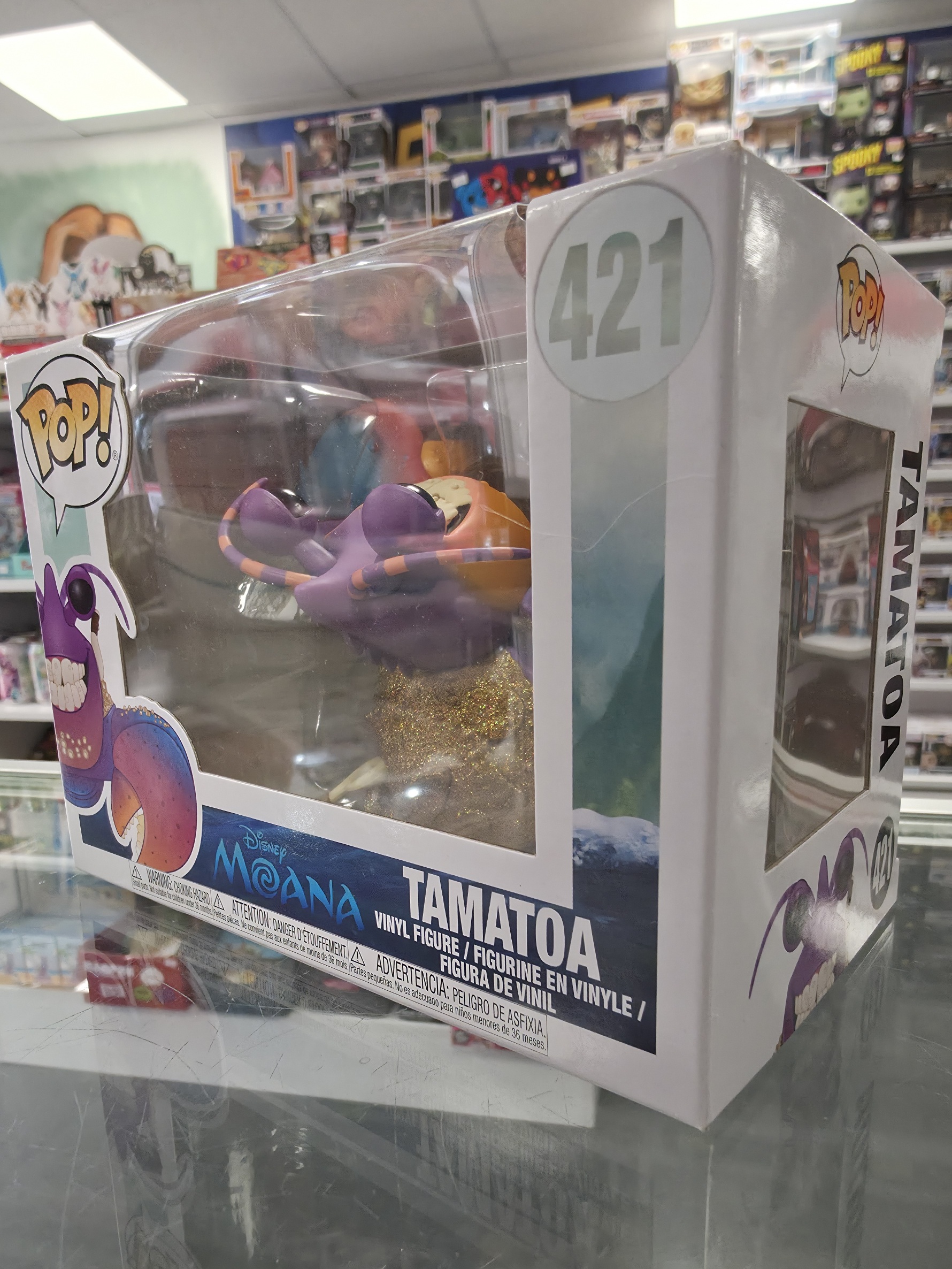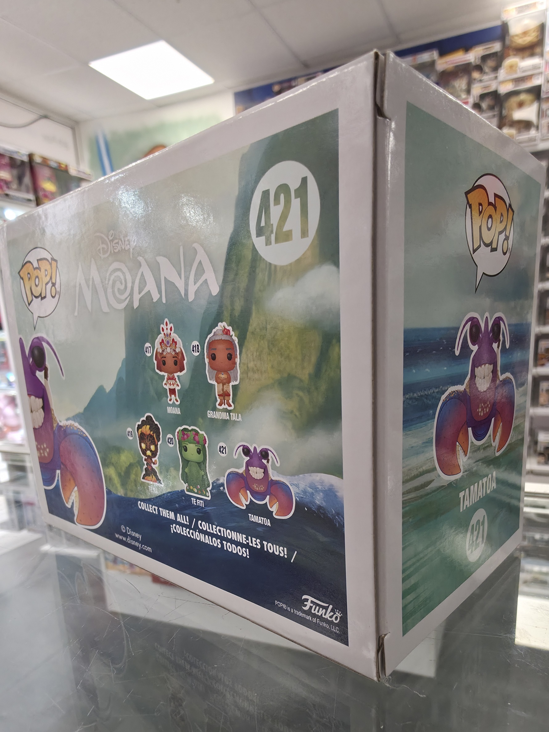 This Pre Loved Disney: Tamatoa Funko POP! Vinyl Figure comes packaged in its original window display box and it's in good condition.