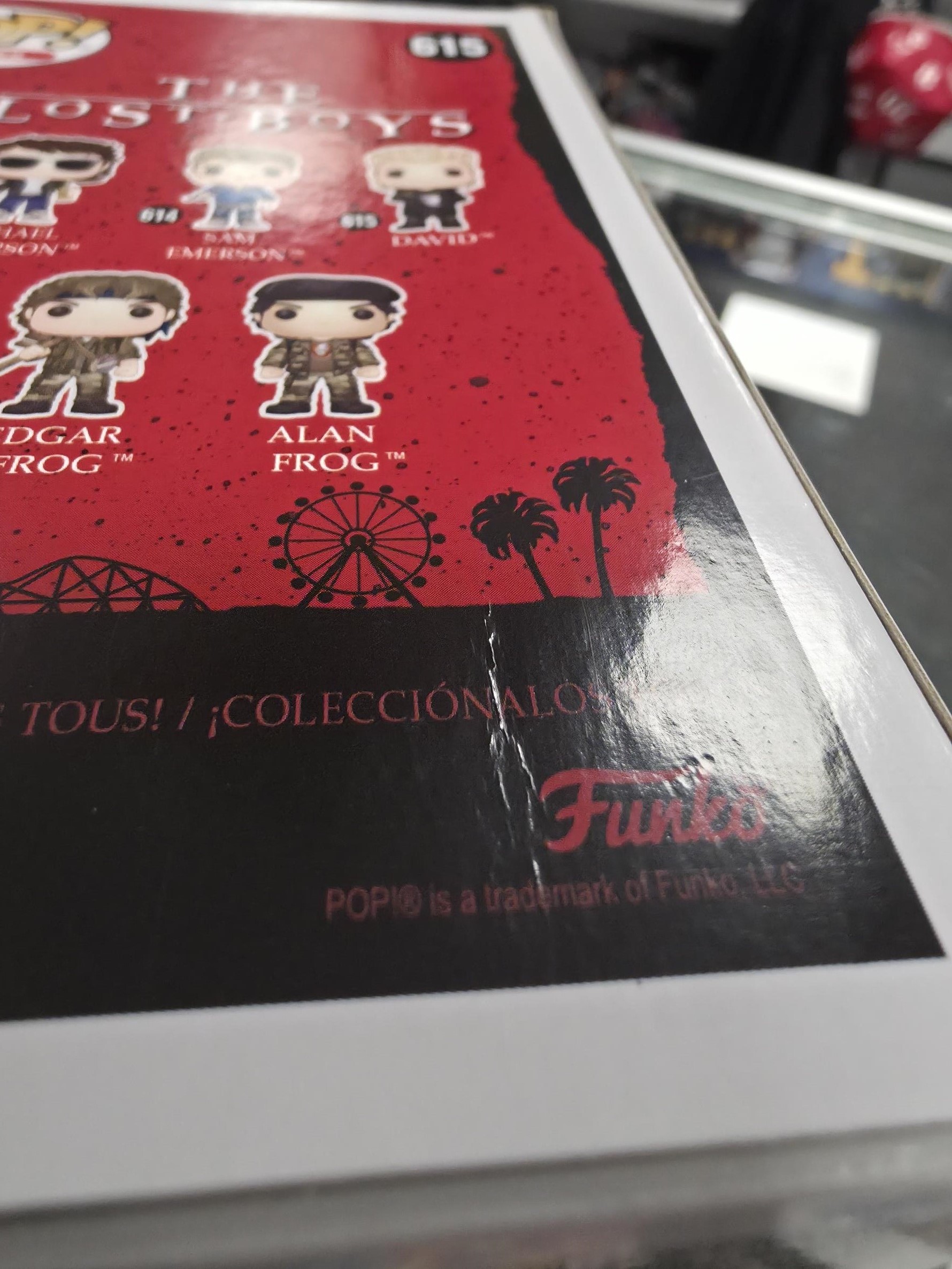 This Pre Loved The Lost Boys: David with Noodles 615 Funko POP! Vinyl Figure comes packaged in its original window display box and it's in fair condition.