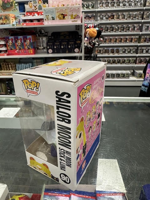 This Pre Loved sailor moon 90 Funko POP! Vinyl Figure comes packaged in its original window display box and it's in fair condition.