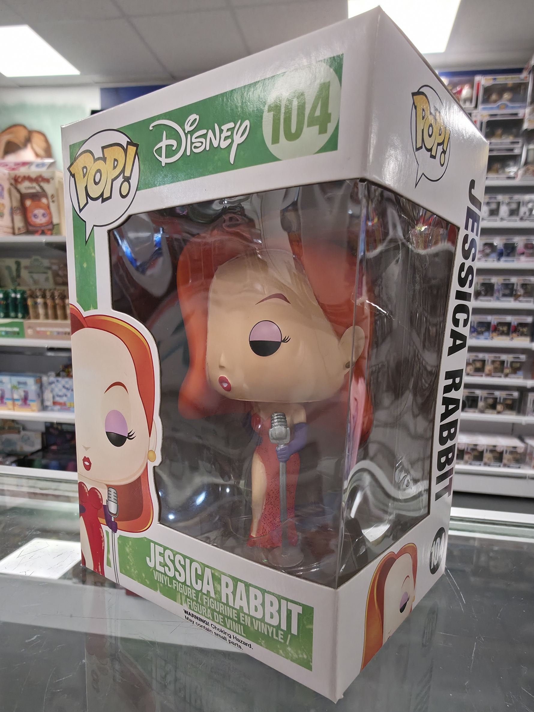 This Pre Loved Jessica Rabbit Funko POP! Vinyl Figure comes packaged in its original window display box and it's in good condition.