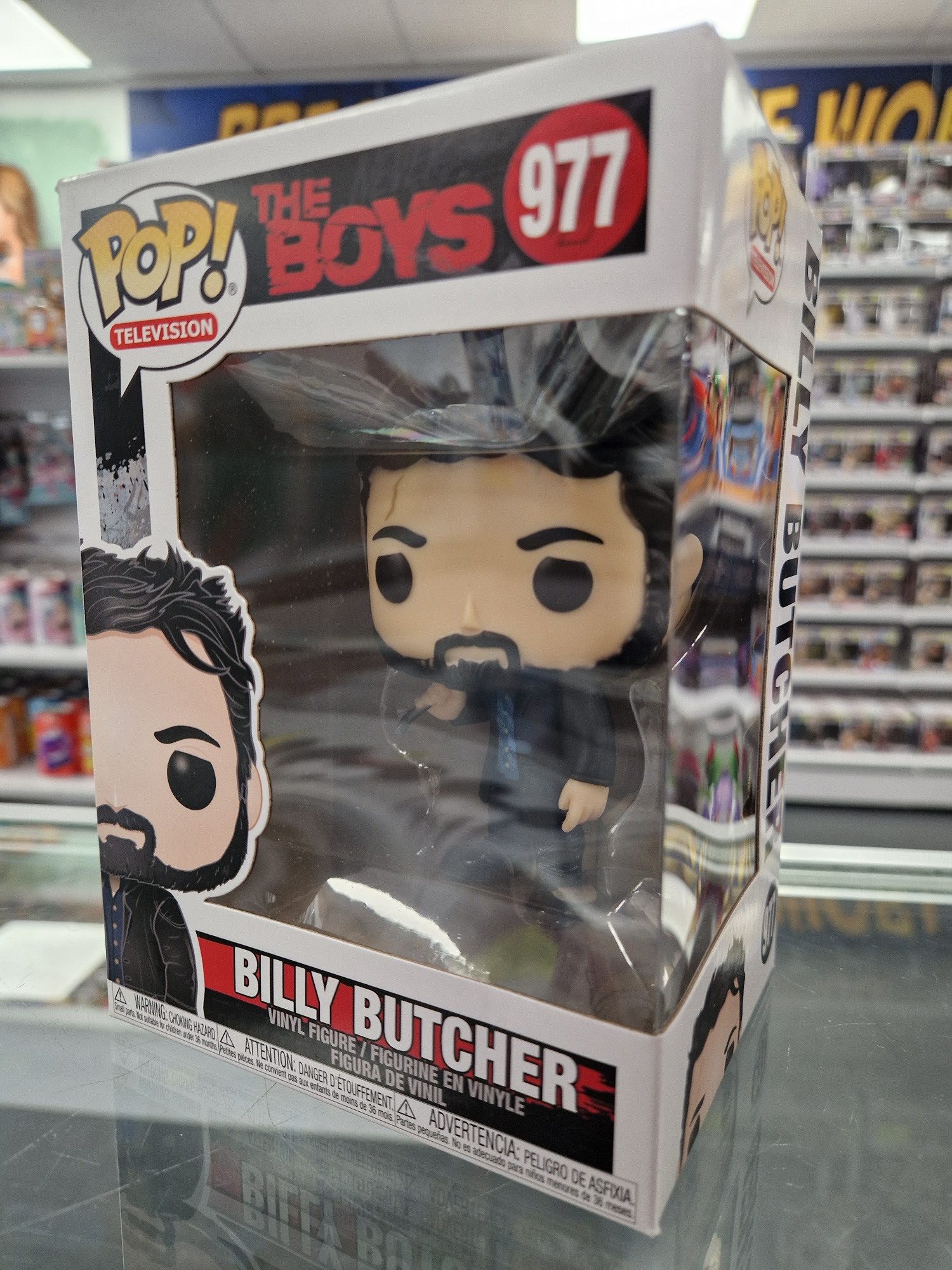 This Pre Loved The Boys- Billy Butcher Funko POP! Vinyl Figure comes packaged in its original window display box and it's in good condition.
