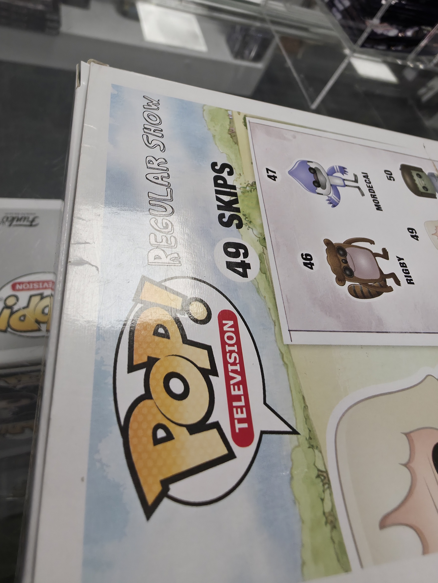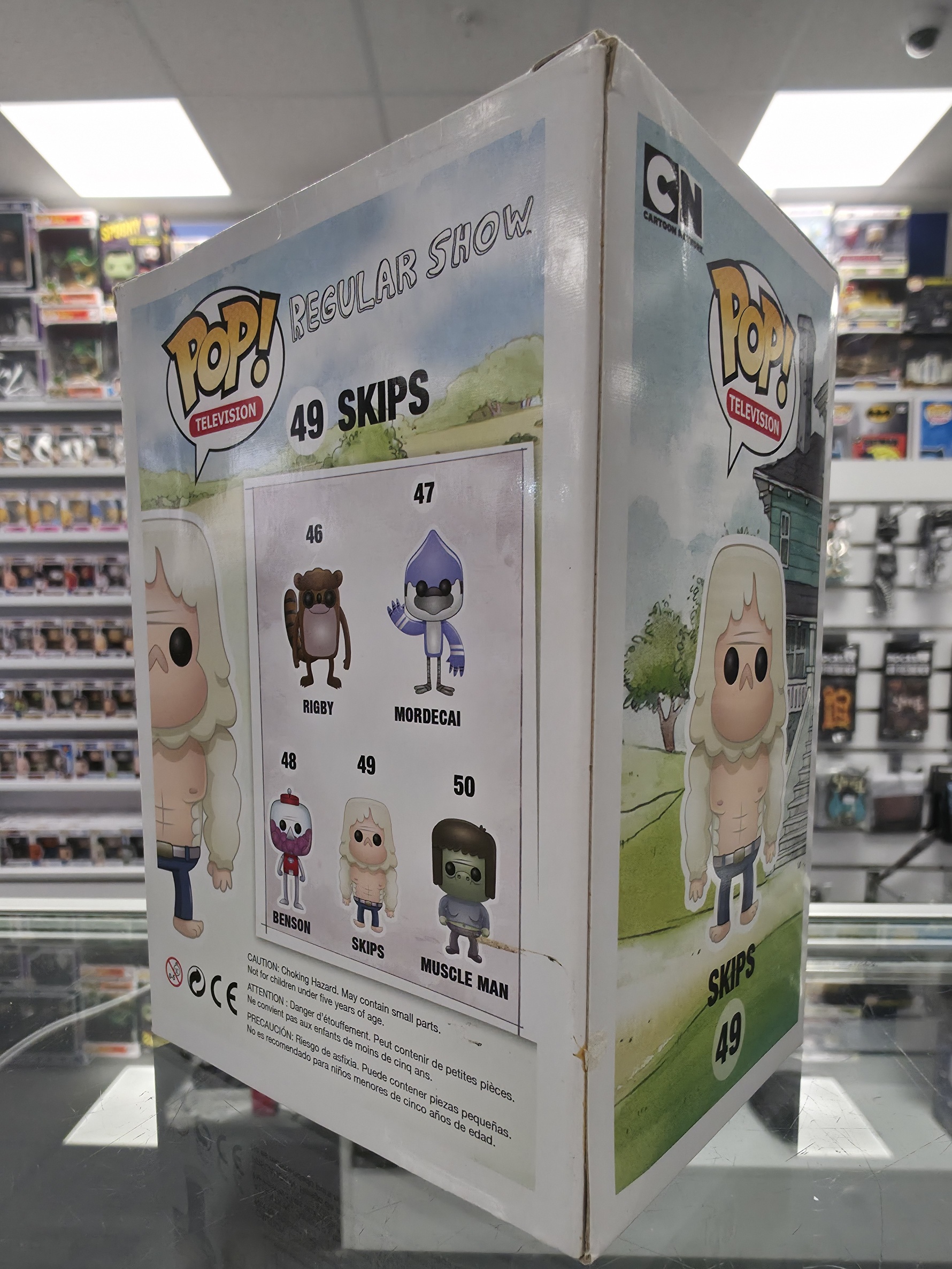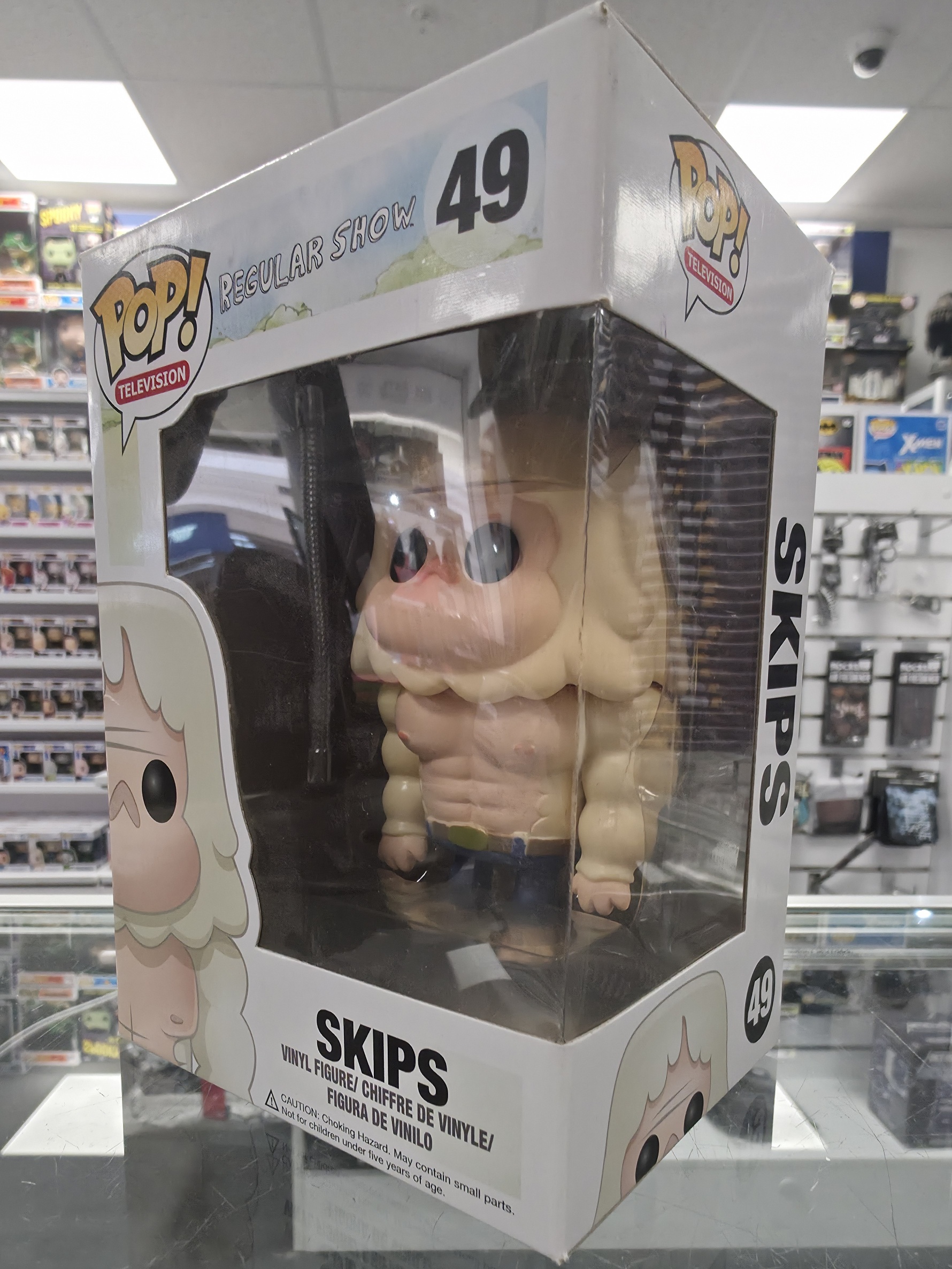 This Pre Loved Regular Show: Skips 49 Funko POP! Vinyl Figure comes packaged in its original window display box and it's in fair condition.