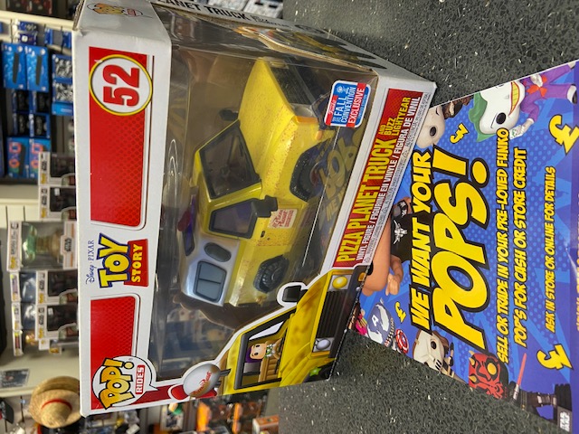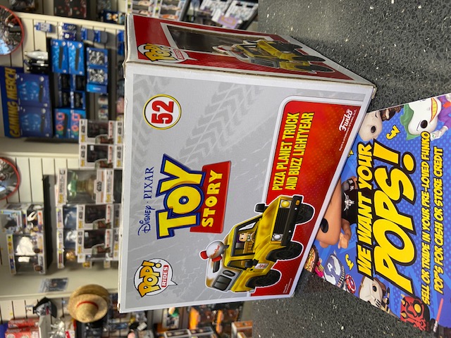 It's to infinity and beyond with this Pre Loved Pizza Planet Truck and Buzz Funko POP! Vinyl Figure comes packaged in its original window display box and it's in very good condition.