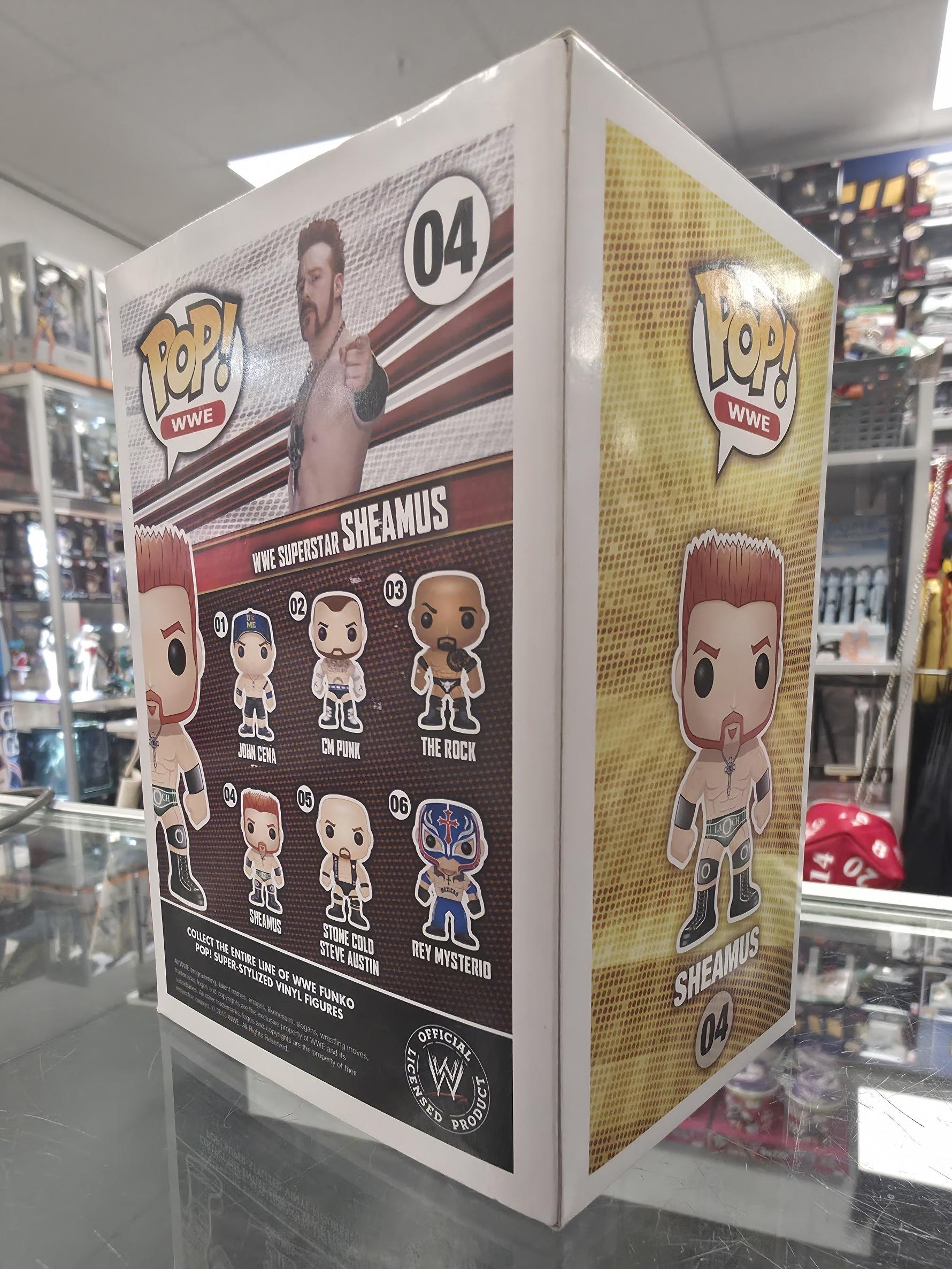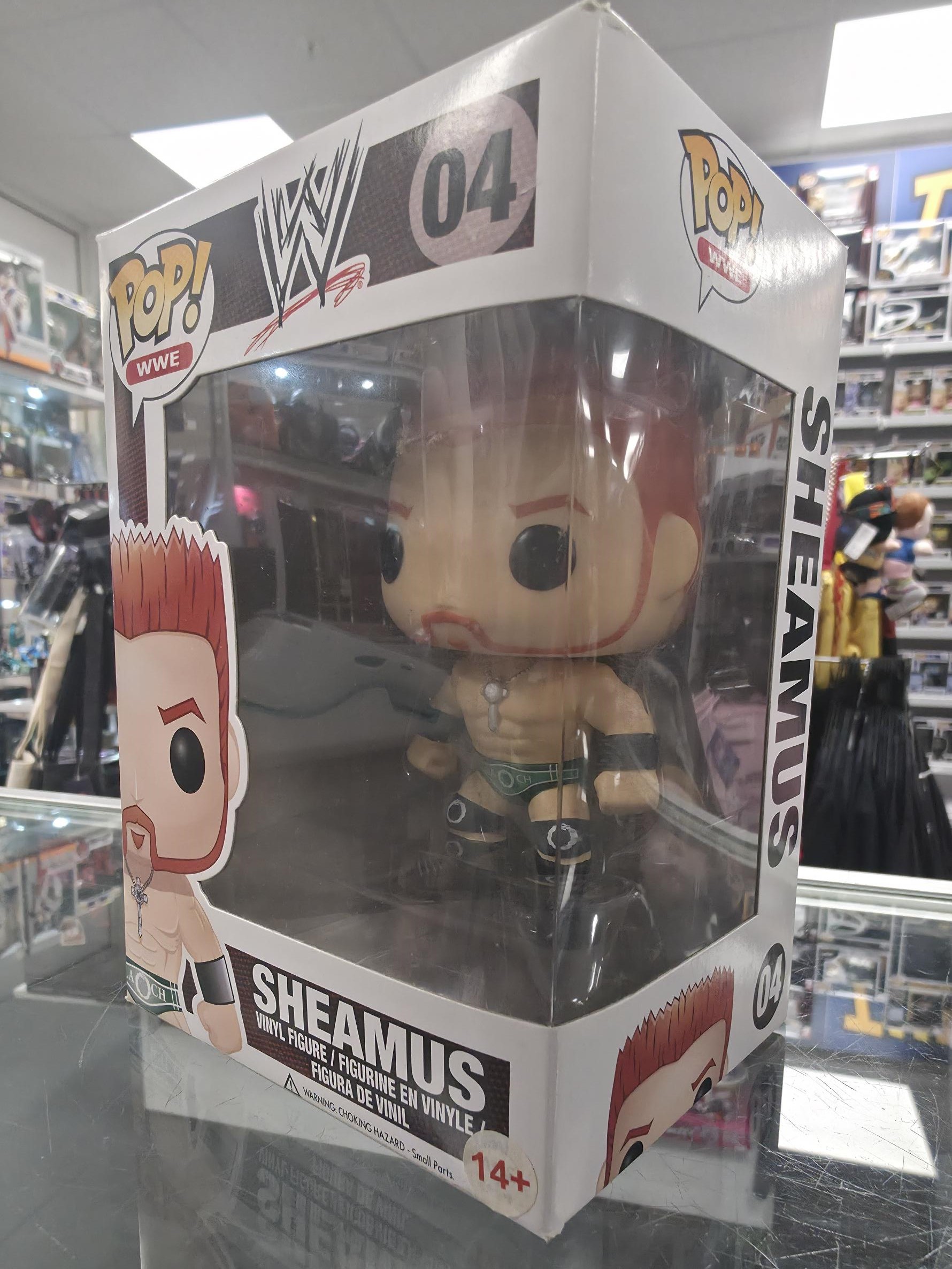 This Pre Loved WWE: Sheamus Funko POP! Vinyl Figure comes packaged in its original window display box and it's in good condition.