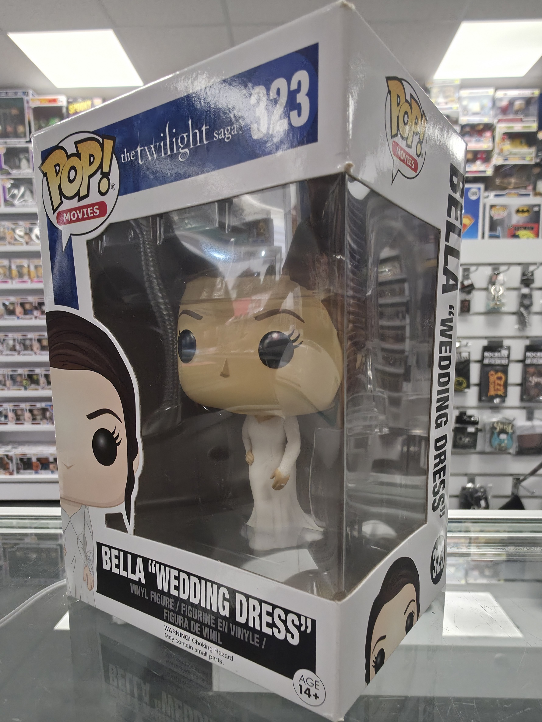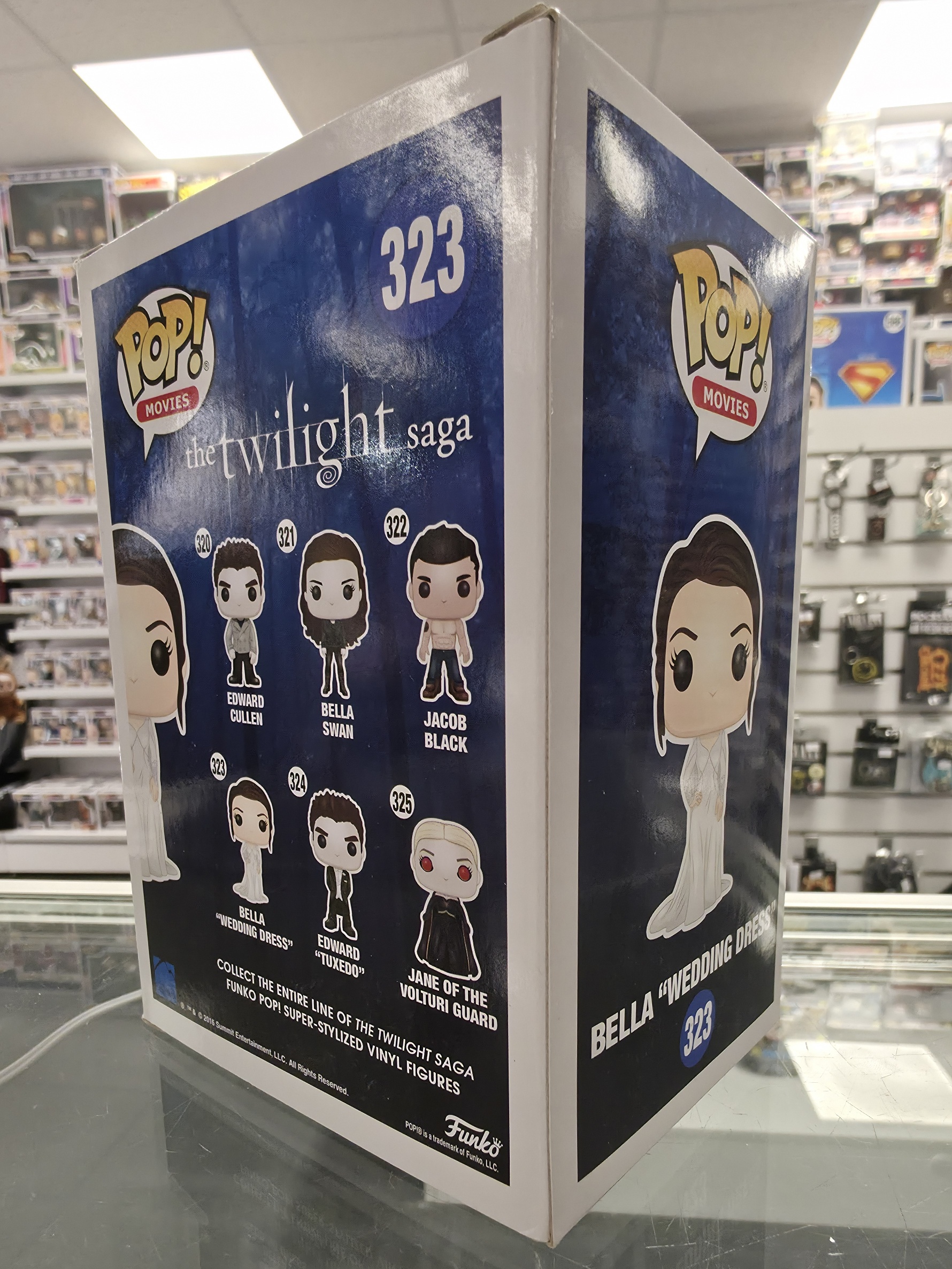 This Pre Loved Twilight: Bella Wedding Dress 323 Funko POP! Vinyl Figure comes packaged in its original window display box and it's in fair condition.