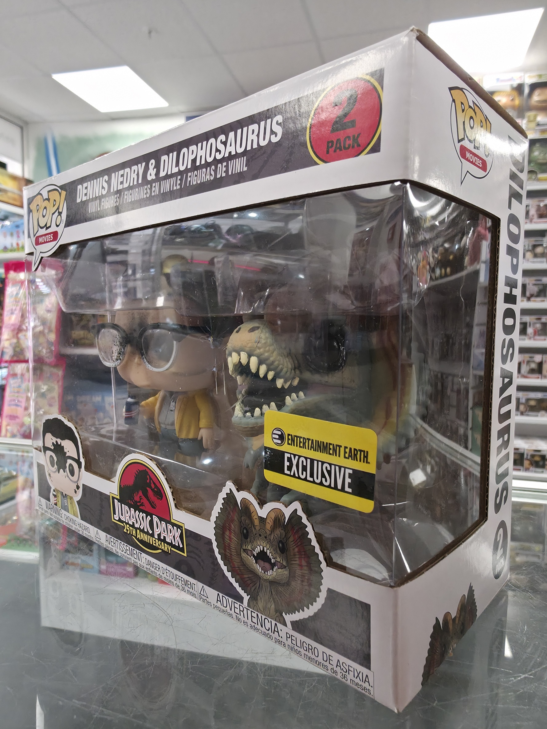This Pre Loved J. Park: Dennis & Dilophposaurus Funko POP! Vinyl Figure comes packaged in its original window display box and it's in good condition.