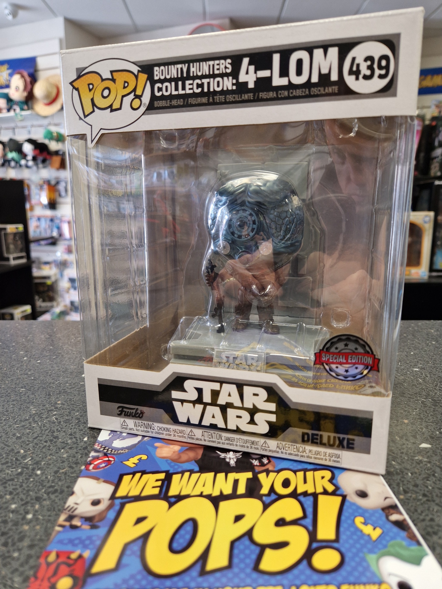 This Pre Loved Star Wars: Bounty Hunters Collection 4-LOM Funko POP! Vinyl Figure comes packaged in its original window display box and it's in good condition.