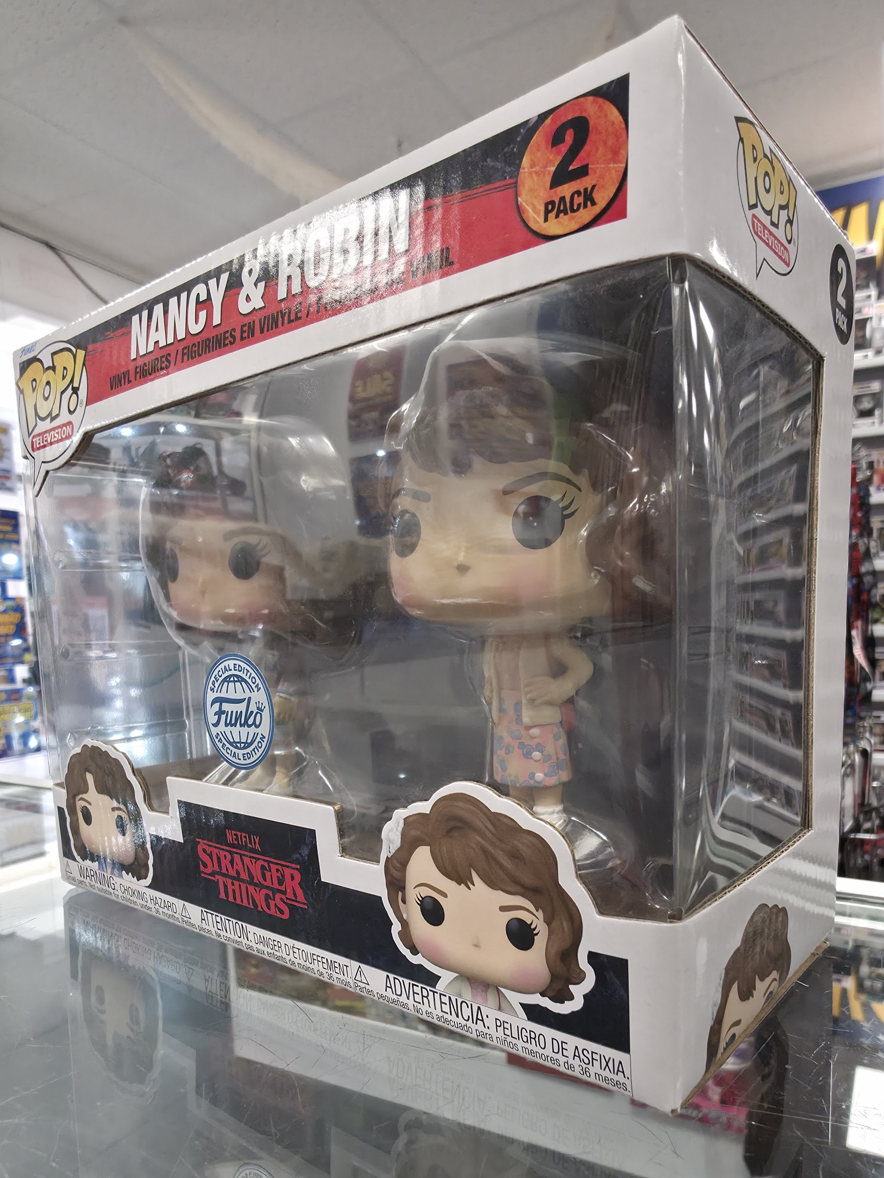 This Pre Loved Stranger Things S4 - Nancy & Robin 2 Pack Funko POP! Vinyl Figure comes packaged in its original window display box and it's in good condition.