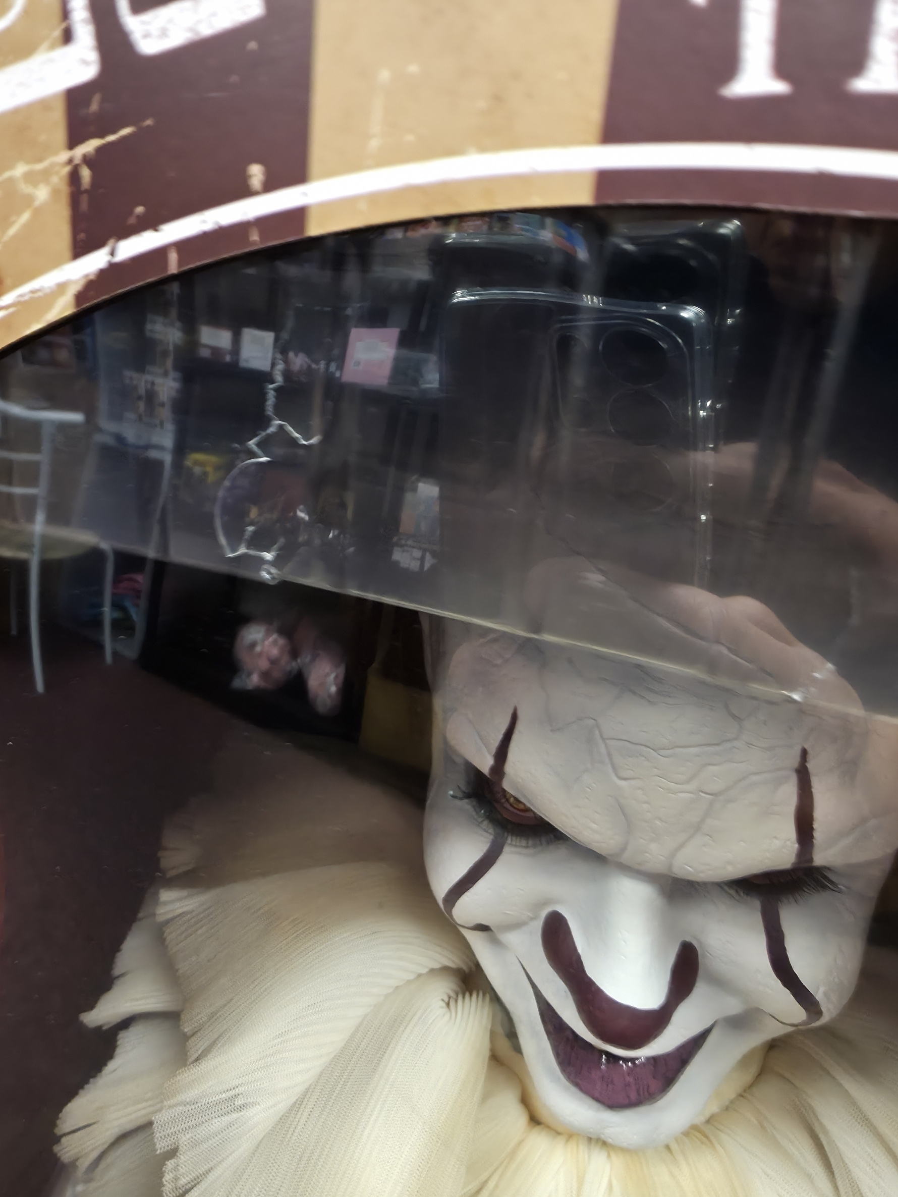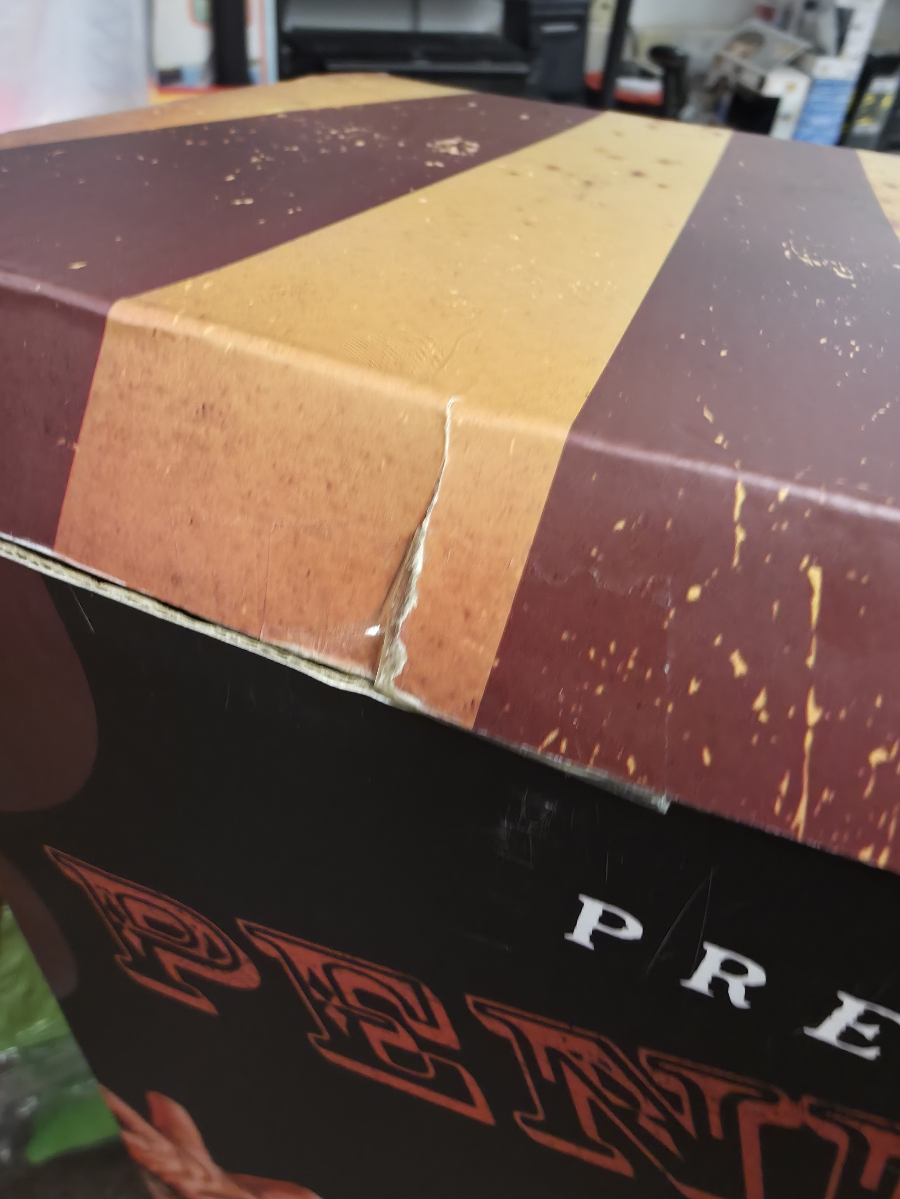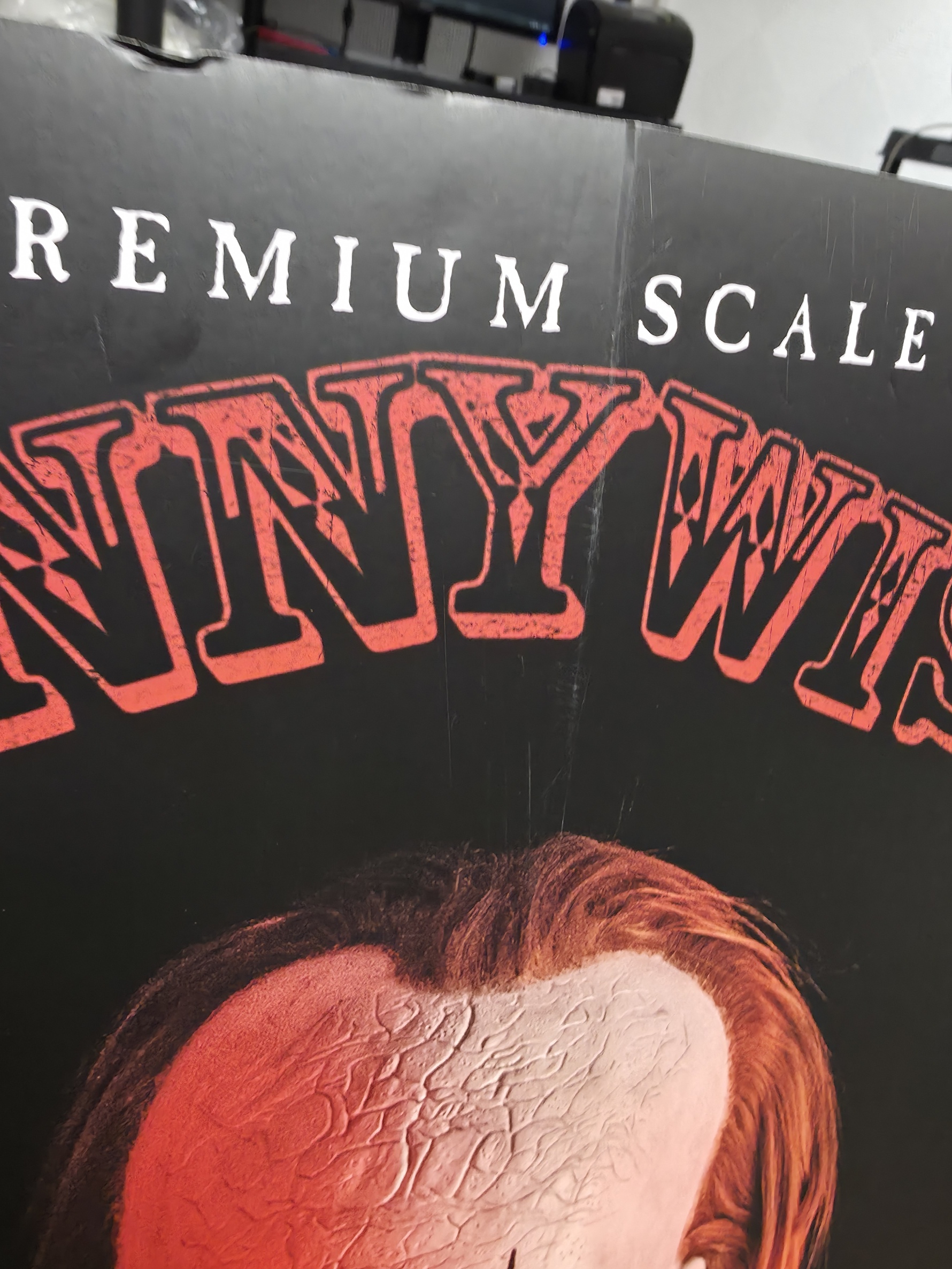 PLEASE BE AWARE THAT THIS PENNWISE DOLL HAS SOME COSMETIC DAMAGE TO THE BOX.