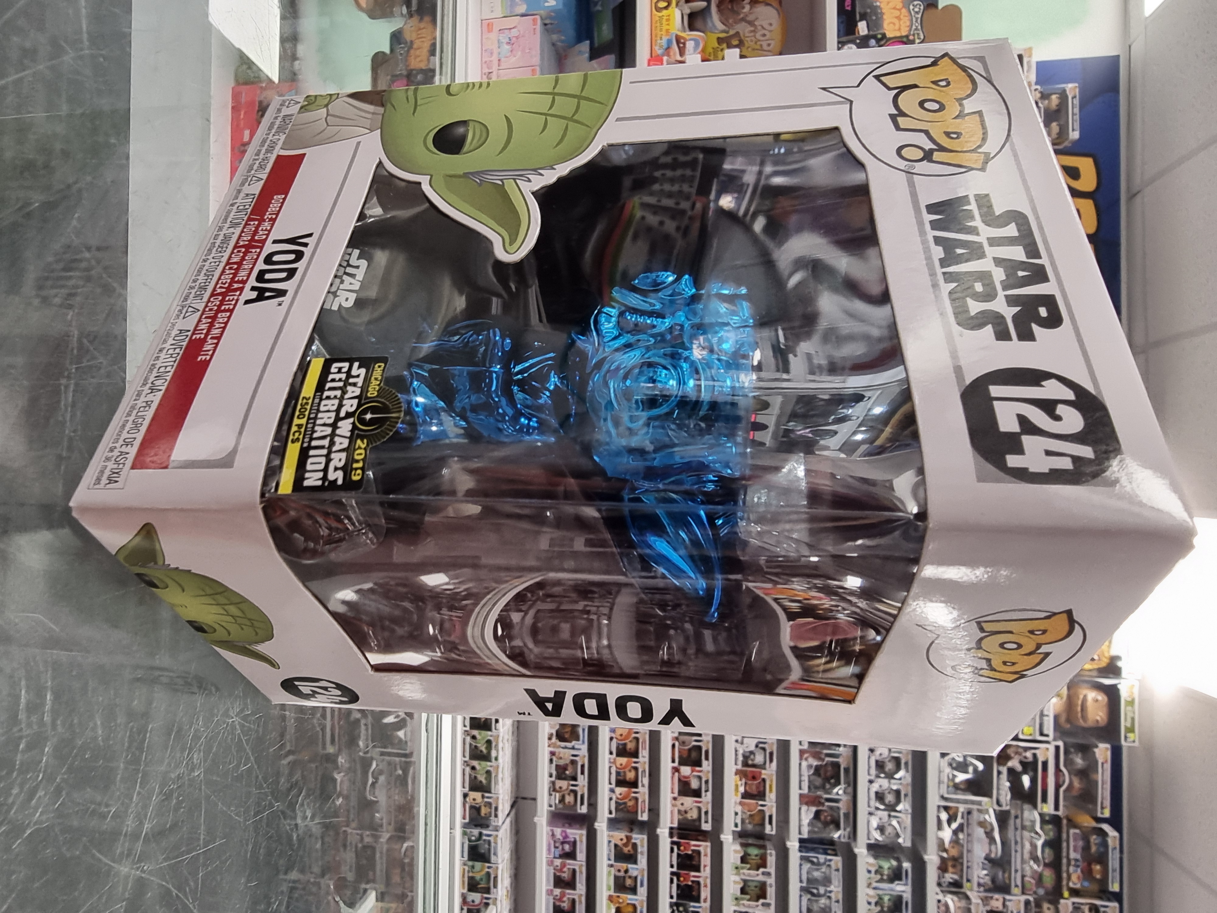 This Pre Loved Star Wars: Yoda (Blue Chrome) 124 Funko POP! Vinyl Figure comes packaged in its original window display box and it's in good condition.