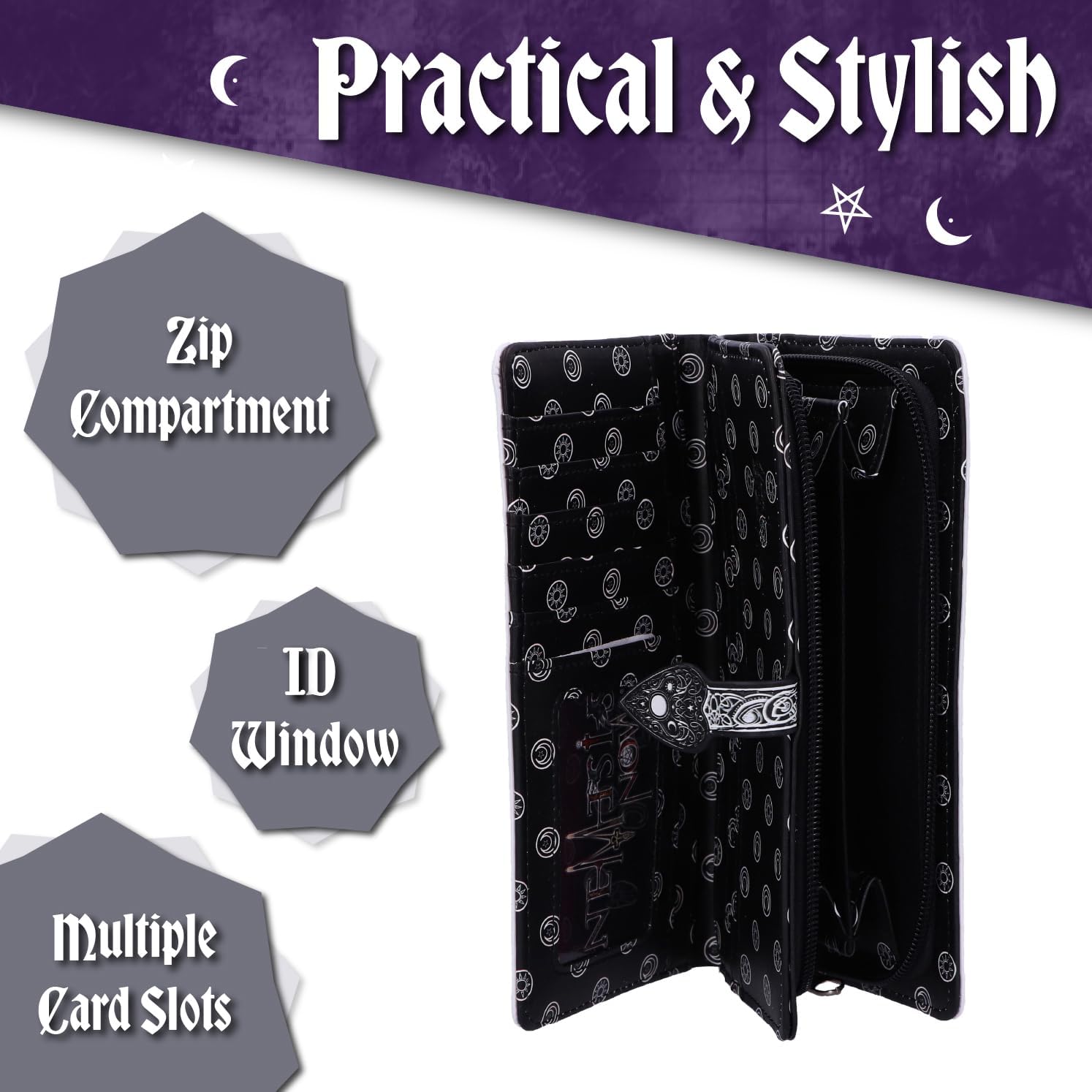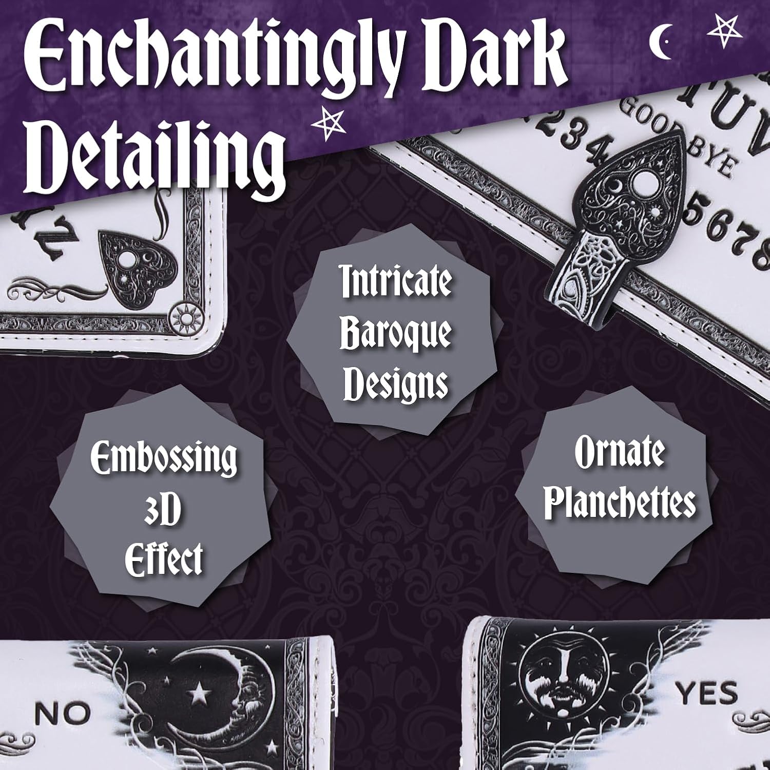 - Classic white and black spirit board pattern: from the untamed imagination of our in-house design team, this embossed Purse is available exclusively through Nemesis Now