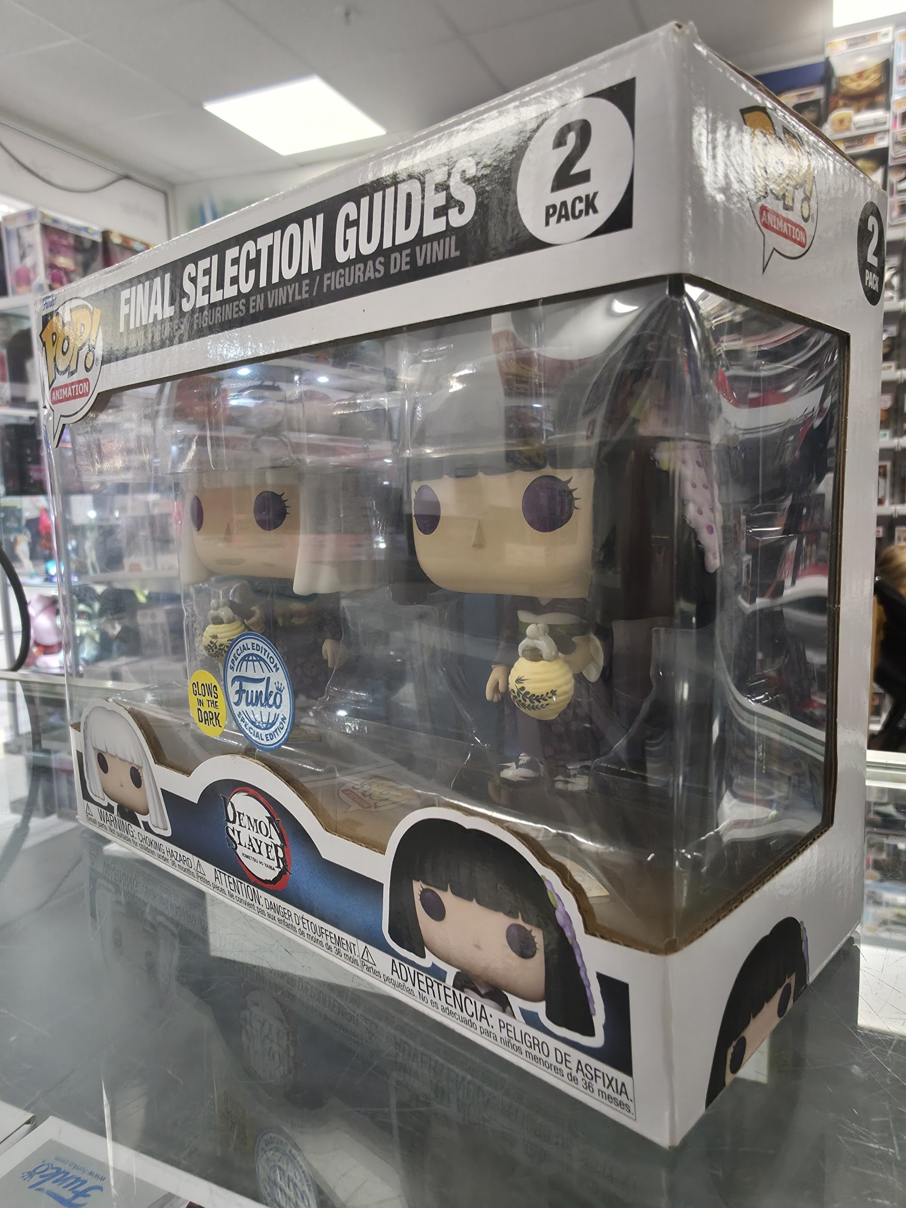 This Pre Loved Demon Slayer: Final Selection Guides GITD 2PK Funko POP! Vinyl Figure comes packaged in its original window display box and it's in good condition.