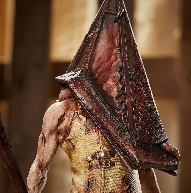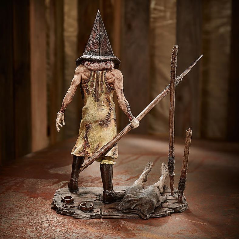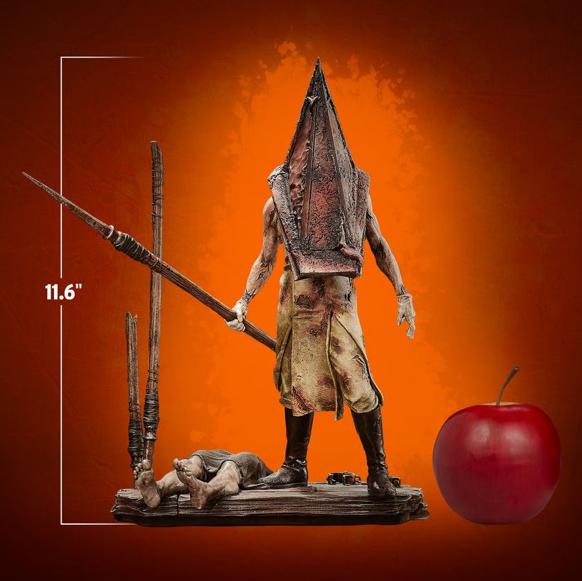 A truly grim fate awaits those who cross the Red Pyramid Thing. Summoned from the twisted mind of James Sunderland and his distorted notion of reality, this menacing creature is not to be underestimated. Standing at 11.6” (29.5cm), this ominous statue has been crafted with meticulous detail to replicate Silent Hill’s notorious creature to a breathtaking degree. With chilling features from his foreboding headpiece and bloodied attire to the themed floorboard base with broken spears, shackles, and his latest victim at his feet, this spectacular sculpture is one any Silent Hill fan will surely treasure!
