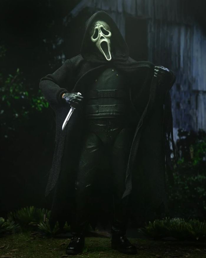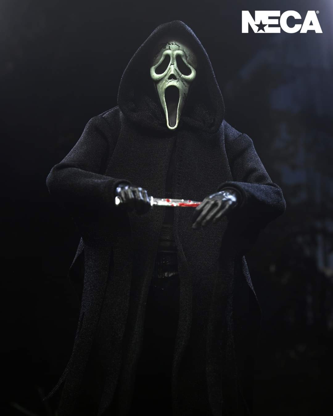GhostFace returns in this all-new Ultimate 7-inch scale action figure from NECA! Featuring an updated sculpt and enhanced articulation, Ghost Face is ready to terrorise beneath a new, opening soft-goods cloak with three interchangeable hood options. But that’s not all—NECA’s latest faceplate technology brings Ghost Face to life with four interchangeable masks: chrome, white, devil, and aged.