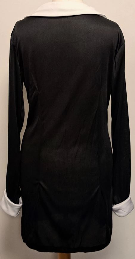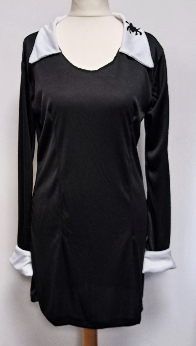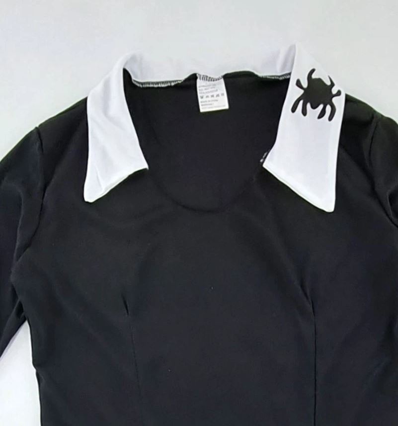 Look eerily stylish this Halloween and be the scariest daughter (think Wednesday Addams from Addams family) ever in this Adult Scary Daughter fancy dress costume! This chic and creepy number features a long-sleeved black dress with white collar and cuffs that'll have you looking spooktacular for all your Halloween bashes or any other costume party you're attending. The collar also has a contrasting black spider shadow so prepare to haunt everyone with your supernatural style!