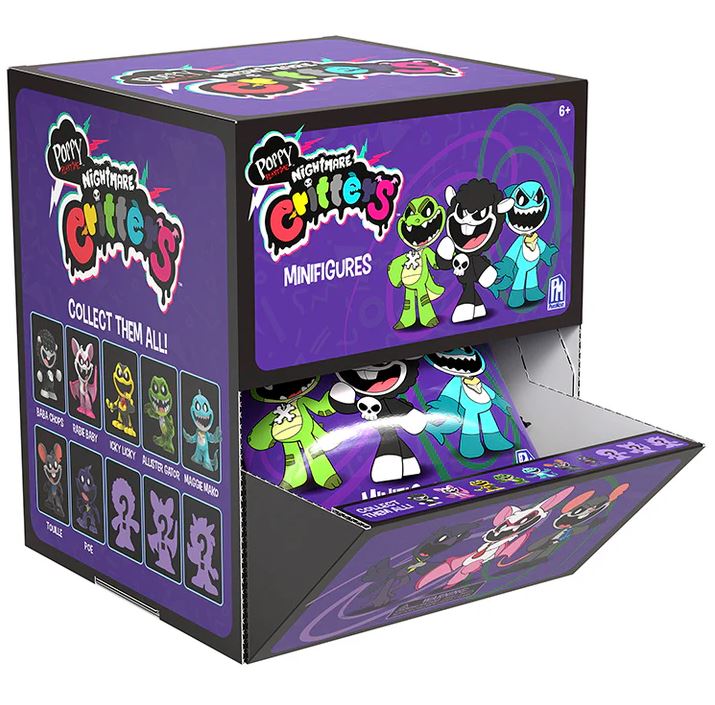 Unbox the mysteries of Playtime Co. with the Poppy Playtime Series 4 Nightmare Critters Mystery Minifigures! This creepy collection features fan-favourite characters from Chapter 4: Baba Chops, Rabie Baby, Icky Licky, Allister Gator, Maggie Mako, Touille, Simon Smoke, and three exclusive mystery critters. Standing at 2.67 inches tall, these colourful, stylised, collectible minifigures bring the chaotic charm of the Nightmare Critters to life right on your shelf! Whether you’re building your Poppy Playtime collection or gifting a fan, these officially licensed collectibles are packed with play and display potential.