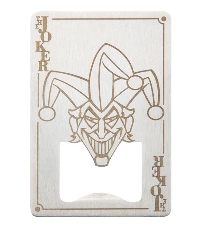 Unleash a little chaos at your next gathering with The Joker Card Bottle Opener.
