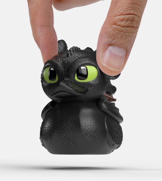 The lovable Night Fury, Toothless is making a splash, as a collectable Mini TUBBZ! Toothless has transformed into an adorable cosplaying duck, complete with his sleek black scales, piercing green eyes, and signature tail fin. This mischievous yet loyal dragon is ready to soar (or swim) into your collection! Whether you're a longtime How to Train Your Dragon fan or just love quirky collectibles, this Mini TUBBZ is an absolute must-have.