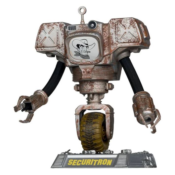 Securitrons are heavily armed, monowheel security robots developed by RobCo and H&H Tools. Built with titanium alloy and advanced displays, they’re resistant to small arms fire and capable of showing expressive facial animations. Designed for defense and control, they’re a key force in maintaining order across the Fallout wasteland