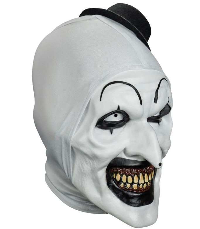 Trick or Treat Studios is proud to present the officially licensed Terrifier 2 - Art the Clown Deluxe Injection Mask. The hard plastic face mask features an elastic strap for comfortable wear. It includes Art the Clown's signature white head covering with attached hat to create a realistic look perfect for Halloween or your next Terrifier marathon.
