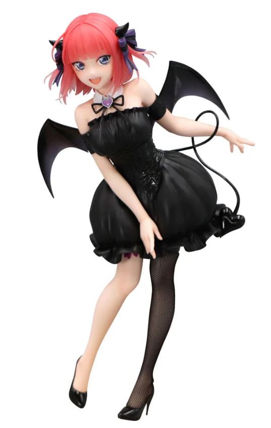 From "The Quintessential Quintuplets" comes this detailed PVC statue figure of Nakano Nino in her succubus girl outfit! She comes with black wings with a net tight. Part of FuRyu's BiCute Dark range of succubus girl prize figures.