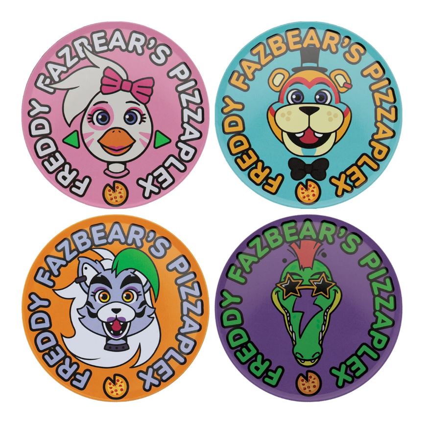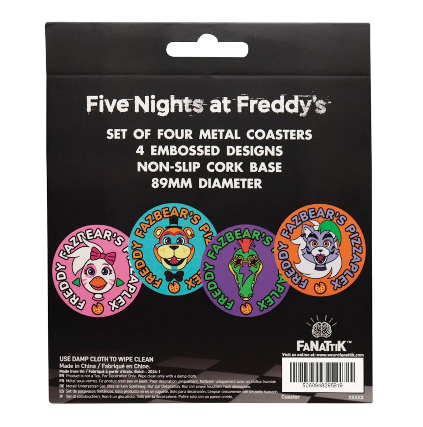 Featuring Glamrock Freddy, Glamrock Chica, Montgomery Gator and Roxanne Wolf, this set of four officially licensed Five Nights at Freddy's coasters are 89mm in diameter and come with a non-slip cork base printed with the game logo.
