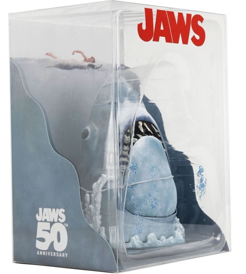 Designed to look like a three-dimensional version of the poster, the shark comes in a clear window box with a backdrop insert that recreates the classic poster. It’s a must-have tribute piece for Jaws fans!