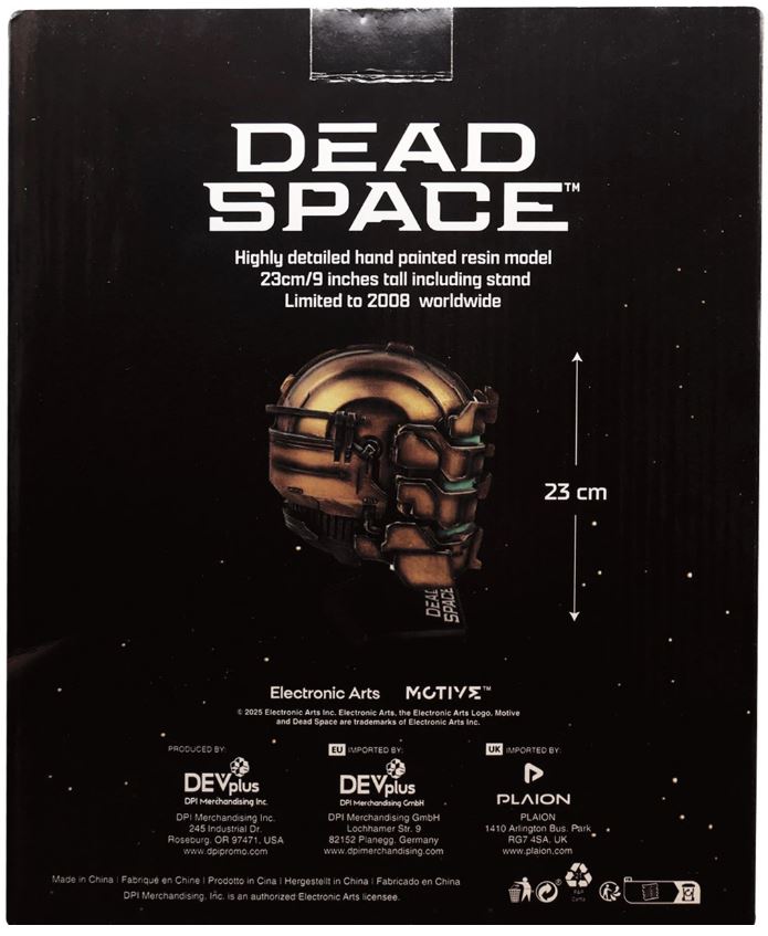 This sci-fi epic is instantly recognisable by the eerie green glow of Isaac's helmet, representing his unyielding struggle for survival. After being sent on an emergency maintenance mission aboard the USG Ishimura, Isaac Clarke is critically unprepared for the nightmarish alien horrors that await him. Welcome to the world of Dead Space In commemoration of this video game's year of release, this replica helmet has been limited to 2008 pieces worldwide.
