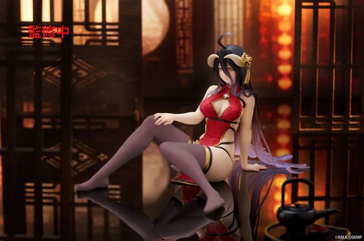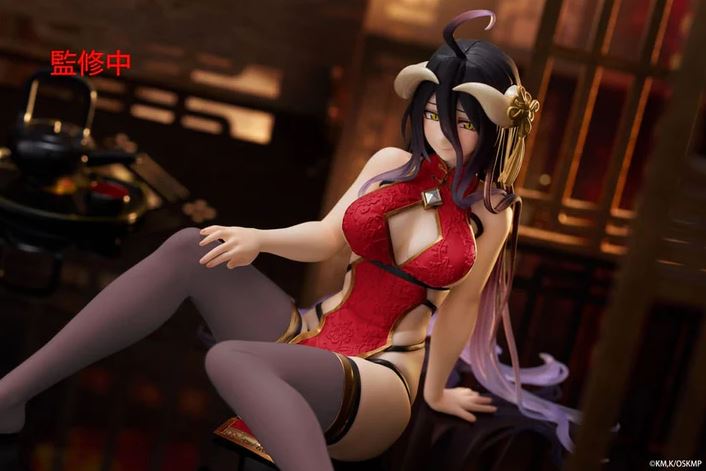 From the anime series "Overlord" comes a 'Desktop Cute' statue figure of Albedo in an alluring red Chinese dress outfit!