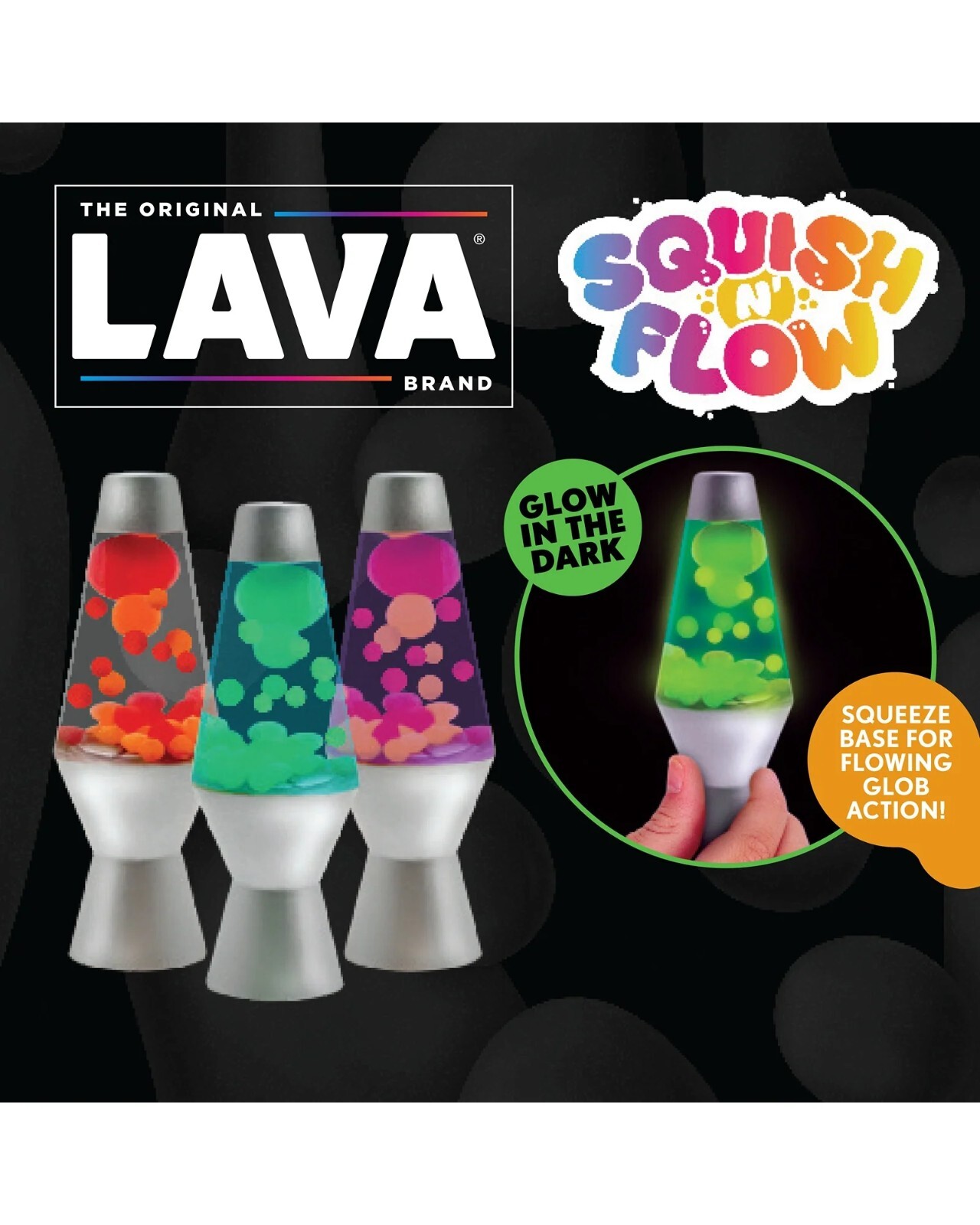 Lava Squish And Flow squishy toy by Schylling. Control the movement of a Lava Lamp at your fingertips with the Lava Squish N’ Flow! Squeeze the base and experience the satisfying, soothing flow of lava globs. The small size is convenient to take this sensory squishing toy anywhere you go. 3.75" tall.