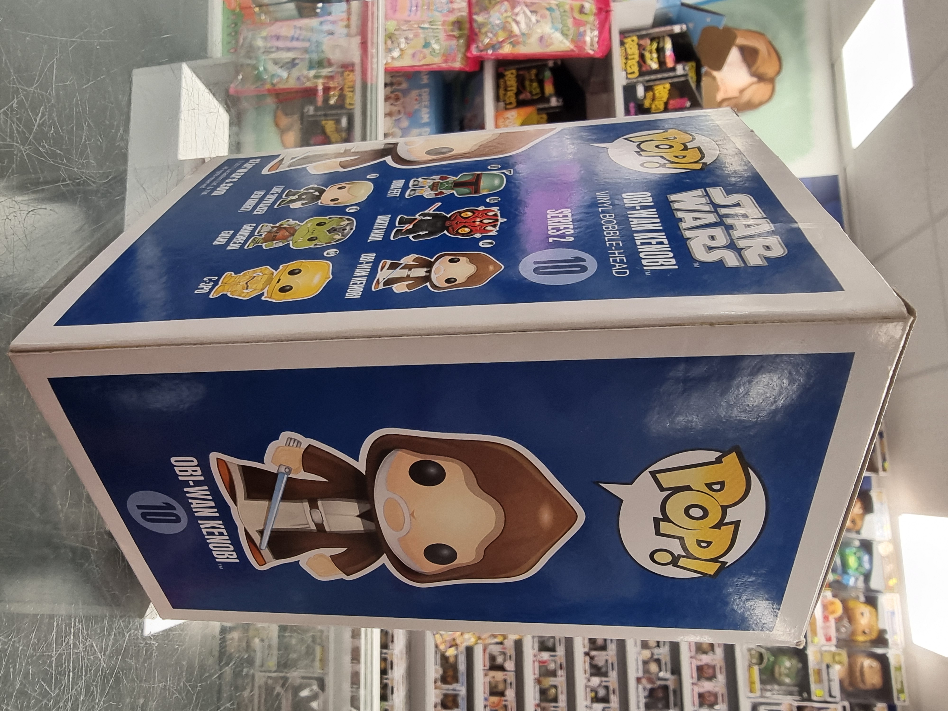 This Pre Loved Star Wars: Obi-Wan Kenobi 10 Blue Large Font Funko POP! Vinyl Figure comes packaged in its original window display box and it's in good condition.