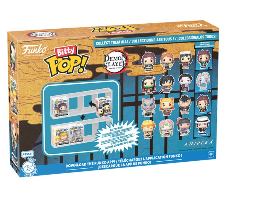 The world of POP! is getting bigger—and smaller—with Bitty POP! collectibles! Expand your Demon Slayer collection with this 4-pack featuring Bitty POP! Inosuke Hashibira, Bitty POP! Kyojuro Rengoku, Bitty POP! Genya Shinazugawa, and a mystery Bitty POP! figure. The possible mystery Bitty POP! collectibles are Rare (1/3) Muzan Kibutsuji, Rare (1/3) Tanjiro with Noodles, Hyper Rare (1/6) Rui, and Hyper Rare (1/6) Tanjiro Kamado – Training. Bitty POP! figures are packaged in hard acrylic cases with detachable bottom lids.